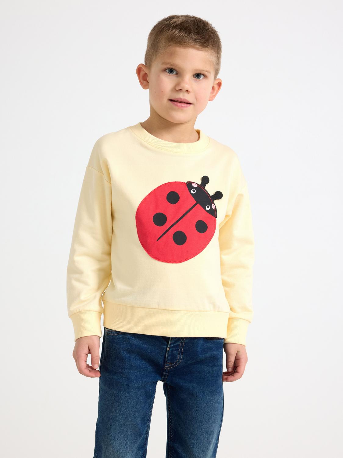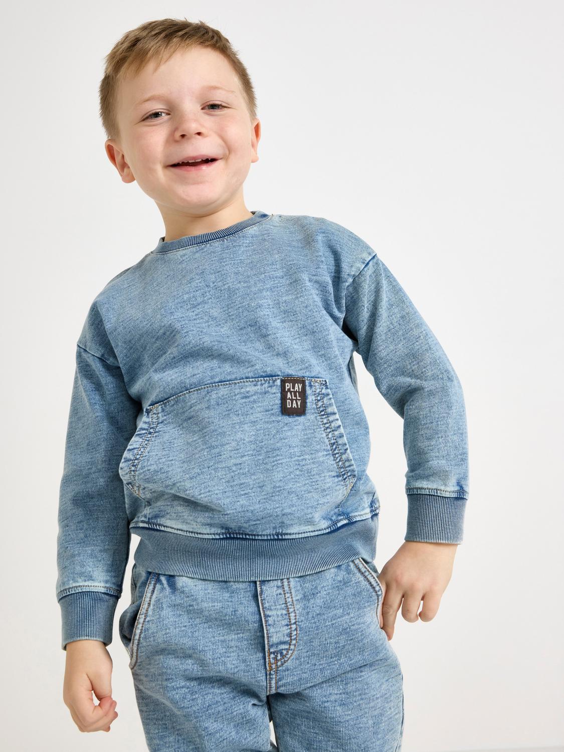 En bekväm sweatshirt i mjuk bomullstrikå, perfekt för barn. Den har en praktisk dragkedja fram och ett fint blommigt mönster som gör den extra söt. Perfekt för lek och mys.