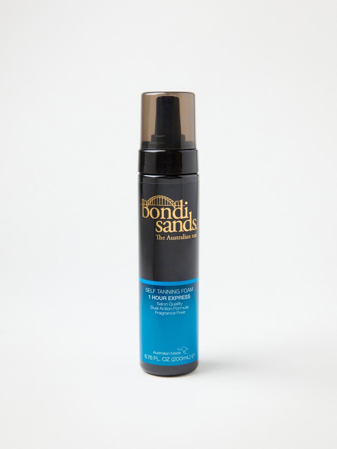 Ett perfekt solkysst glow är bara 1 timme bort med Bondi Sands 1 Hour Express Self Tanning Foam! Denna återfuktande brun utan sol-mousse har en lättviktsformula som ger en långvarig och naturlig brun utan sol-effekt på bara 1 timme och lämnar en återfuktad hud med en strålande solbrun hud. VARNING! Den här produkten innehåller inte solskyddsmedel och skyddar inte mot solbränna. Upprepad solexponering av oskyddad hud vid solbad kan öka risken för åldrande hud, hudcancer och andra skadliga effekter på huden även om du inte bränner dig. FÖRVARA UTOM SYN- OCH RÄCKHÅLL FÖR BARN. ENDAST FÖR UTVÄRTES BRUK. Utför en lapptest på underarmen 24 timmar före användandet. Applicera inte på skadad eller inflammerad hud. Om irritation, rodnad eller klåda uppstår, sluta använda produkten. Vid förtäring, kontakta genast läkare eller giftinformation. Håll borta från ögon och läppar. Om produkten skulle råka komma in i ögonen eller på läpparna, skölj ordentligt med rikligt med rent vatten. Sök läkare om irritationen håller i sig. FÖRVARAS UNDER 30°C (86°F). FÖRVARAS STÅENDE.