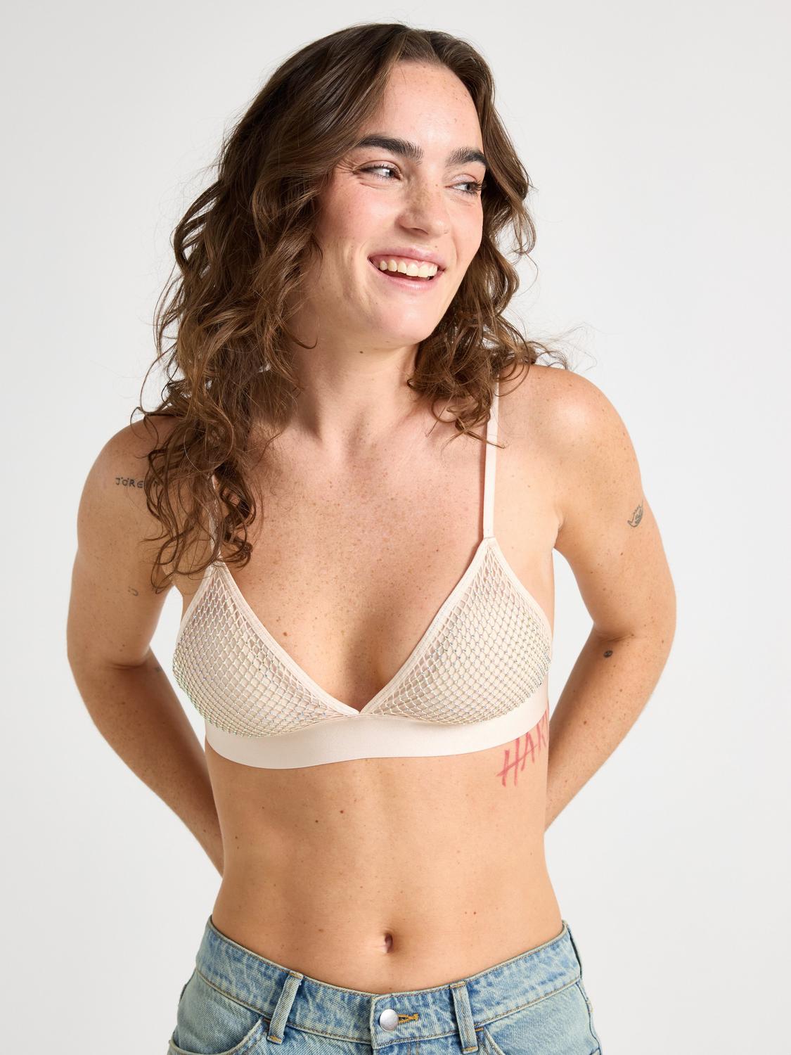 En mjuk och bekväm bralette prydd med glittrande strasstenar. Denna eleganta underklädesplagg har fina meshdetaljer och smala axelband för en feminin touch.