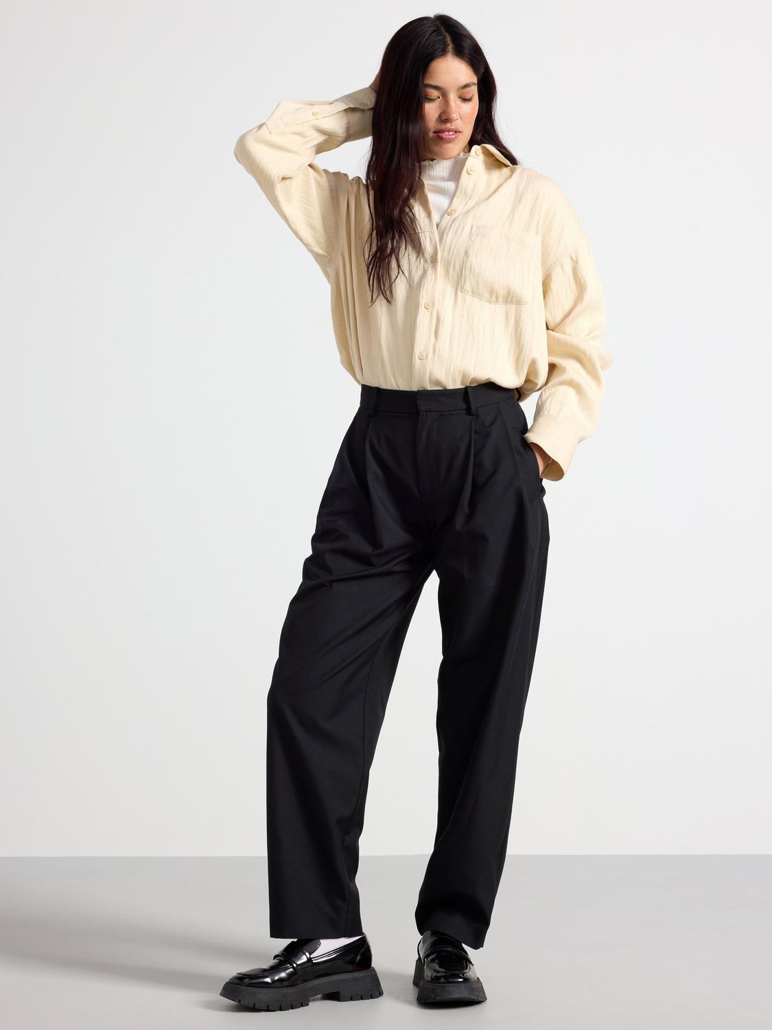 Dessa luftiga byxor i linneblandning har en rak, croppad passform och en bekväm resårmidja. Perfekta för varma dagar och avslappnade tillfällen, kombinerar de stil och komfort på ett enkelt sätt.