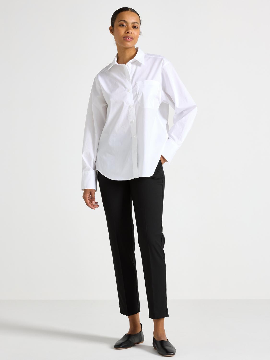 Bekväma och stilrena croppade byxor i ett stretchigt punto-material. Byxorna har en rak passform och en bekväm resårmidja, vilket gör dem perfekta för både vardag och fest.