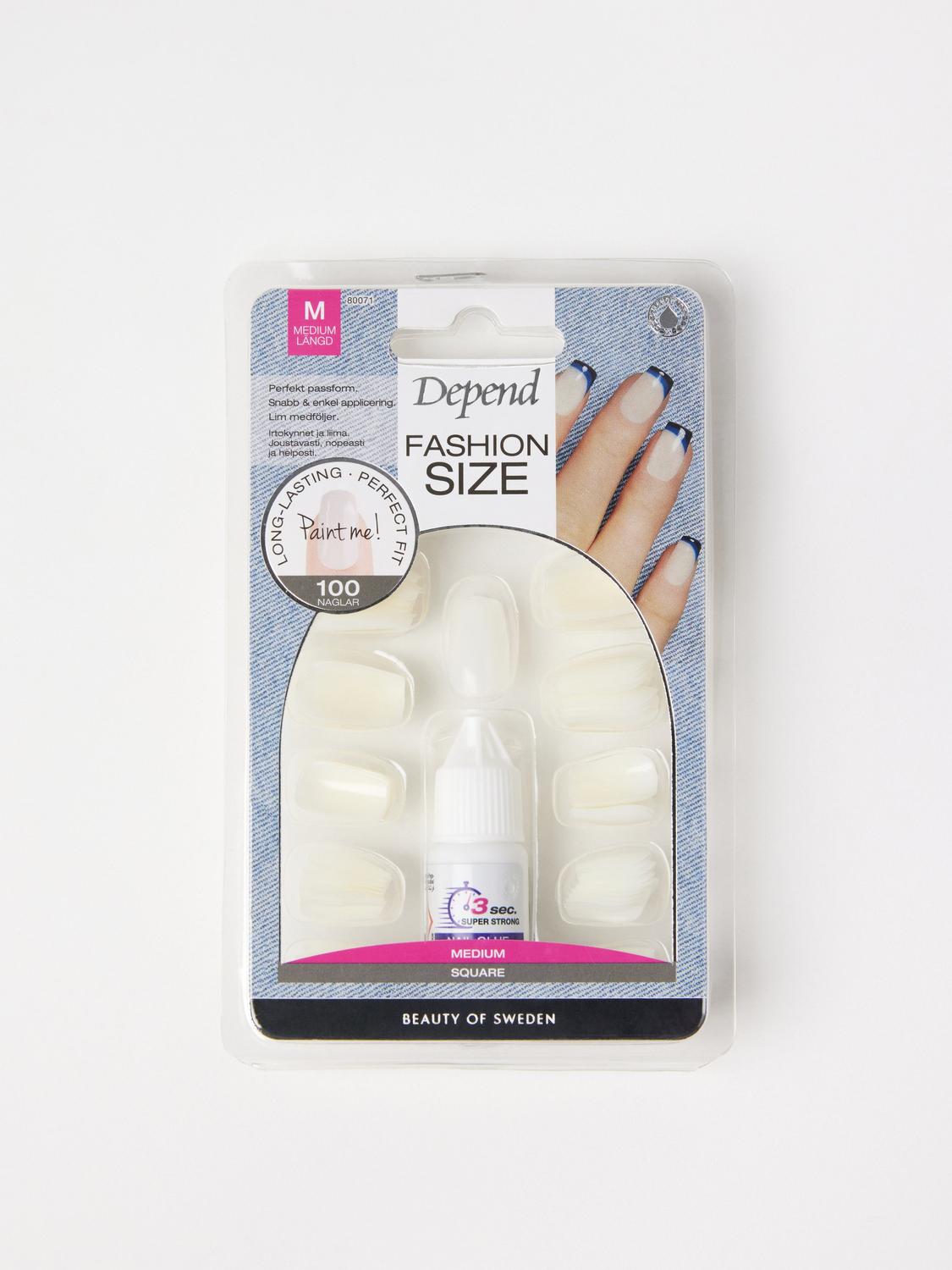 Lösnaglar för en perfekt fransk manikyr på bara några minuter. Flexi-Thin ger den ultimata passformen, är enkla att applicera och har en högglansig yta som varken flagnar eller tappar färg. Lim medföljer. OBS! Vi rekommenderar max 10 dagars användning av lösnaglar i sträck. Sedan skall naglarna luftas innan en ny applicering kan göras, förutsatt att dina naglar då är i god kondition. Vid borttagning av lösnaglar använd Depend Lösnagelremover. OBS! Bryt eller drag aldrig av lösnageln eftersom det kan skada din naturliga nagel.Försiktighetsåtgärder för lim: Om hudens ytor klistras fast, dra ej utan använd en acetonbaserad remover. Använd aldrig lösnaglar om dina naturliga naglar är tunna, skadade eller infekterade. Undvik hetta. Nagellim kan fläcka eller skada tyg. Skydda ytor mot eventuellt spill innan limmet öppnas. Avlägsna kapsylen, håll limtuben upprätt och vrid av vingen för att öppna limmet. OBS: Tuben är en engångsförpackning och kan inte återförslutas. Lägg därför inte den öppna tuben ned, då limrester kan läcka ut. Cyanoakrylat. Fara. Fäster snabbt på hud och ögon. Förvaras oåtkomligt för barn. Orsakar allvarlig ögonirritation. Irriterar huden. Kan orsaka irritation i luftvägarna. VID KONTAKT MED ÖGONEN: Skölj försiktigt med vatten i flera minuter. Ta ur eventuella kontaktlinser om det går lätt. Fortsätt att skölja. Vid bestående ögonirritation: Sök läkarhjälp.