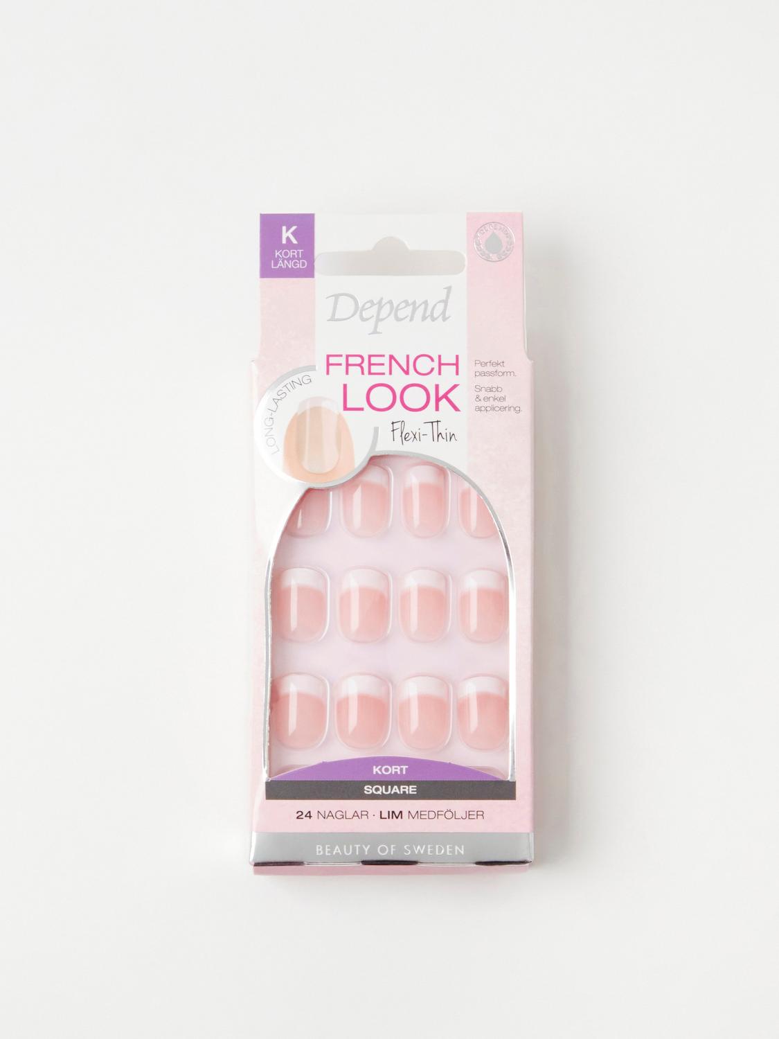 Lösnaglar för en perfekt fransk manikyr på bara några minuter. Flexi-Thin ger den ultimata passformen, är enkla att applicera och har en högglansig yta som varken flagnar eller tappar färg. Lim medföljer. OBS! Vi rekommenderar max 10 dagars användning av lösnaglar i sträck. Sedan skall naglarna luftas innan en ny applicering kan göras, förutsatt att dina naglar då är i god kondition. Vid borttagning av lösnaglar använd Depend Lösnagelremover. OBS! Bryt eller drag aldrig av lösnageln eftersom det kan skada din naturliga nagel.Försiktighetsåtgärder för lim: Om hudens ytor klistras fast, dra ej utan använd en acetonbaserad remover. Använd aldrig lösnaglar om dina naturliga naglar är tunna, skadade eller infekterade. Undvik hetta. Nagellim kan fläcka eller skada tyg. Skydda ytor mot eventuellt spill innan limmet öppnas. Avlägsna kapsylen, håll limtuben upprätt och vrid av vingen för att öppna limmet. OBS: Tuben är en engångsförpackning och kan inte återförslutas. Lägg därför inte den öppna tuben ned, då limrester kan läcka ut. Cyanoakrylat. Fara. Fäster snabbt på hud och ögon. Förvaras oåtkomligt för barn. Orsakar allvarlig ögonirritation. Irriterar huden. Kan orsaka irritation i luftvägarna. VID KONTAKT MED ÖGONEN: Skölj försiktigt med vatten i flera minuter. Ta ur eventuella kontaktlinser om det går lätt. Fortsätt att skölja. Vid bestående ögonirritation: Sök läkarhjälp.