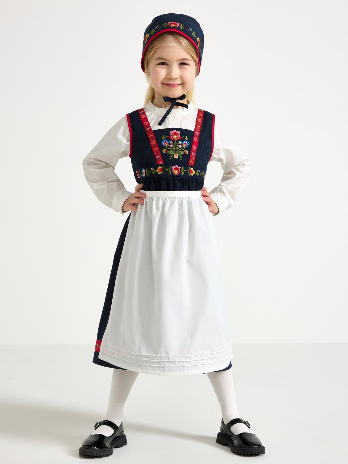 Ren Julklänning är en stickad och fin julklänning som har den perfekta längden. Klänningen är röd med julmotiv i vitt. Matchande tomteluva medföljer och gör outfiten komplett. Tvättas i maskin på skonsamt program, max 30°C. Torkas platt.