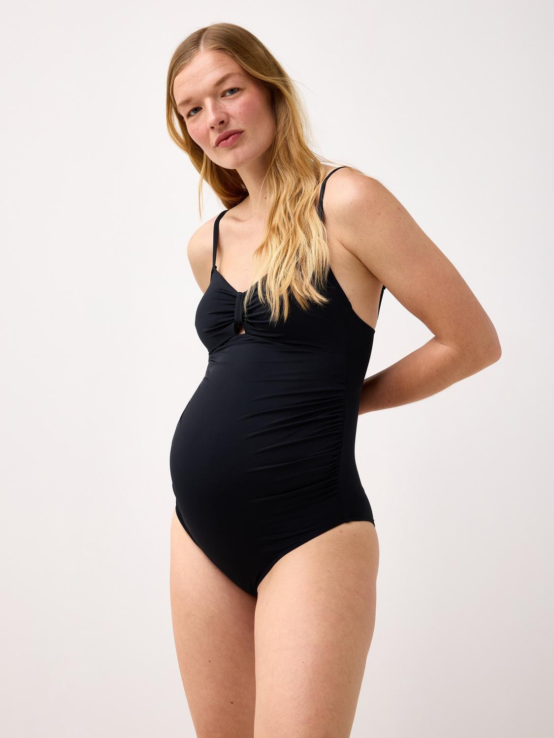 Baddräkt med vadderade kupor och en knytdetalj på baksidan.