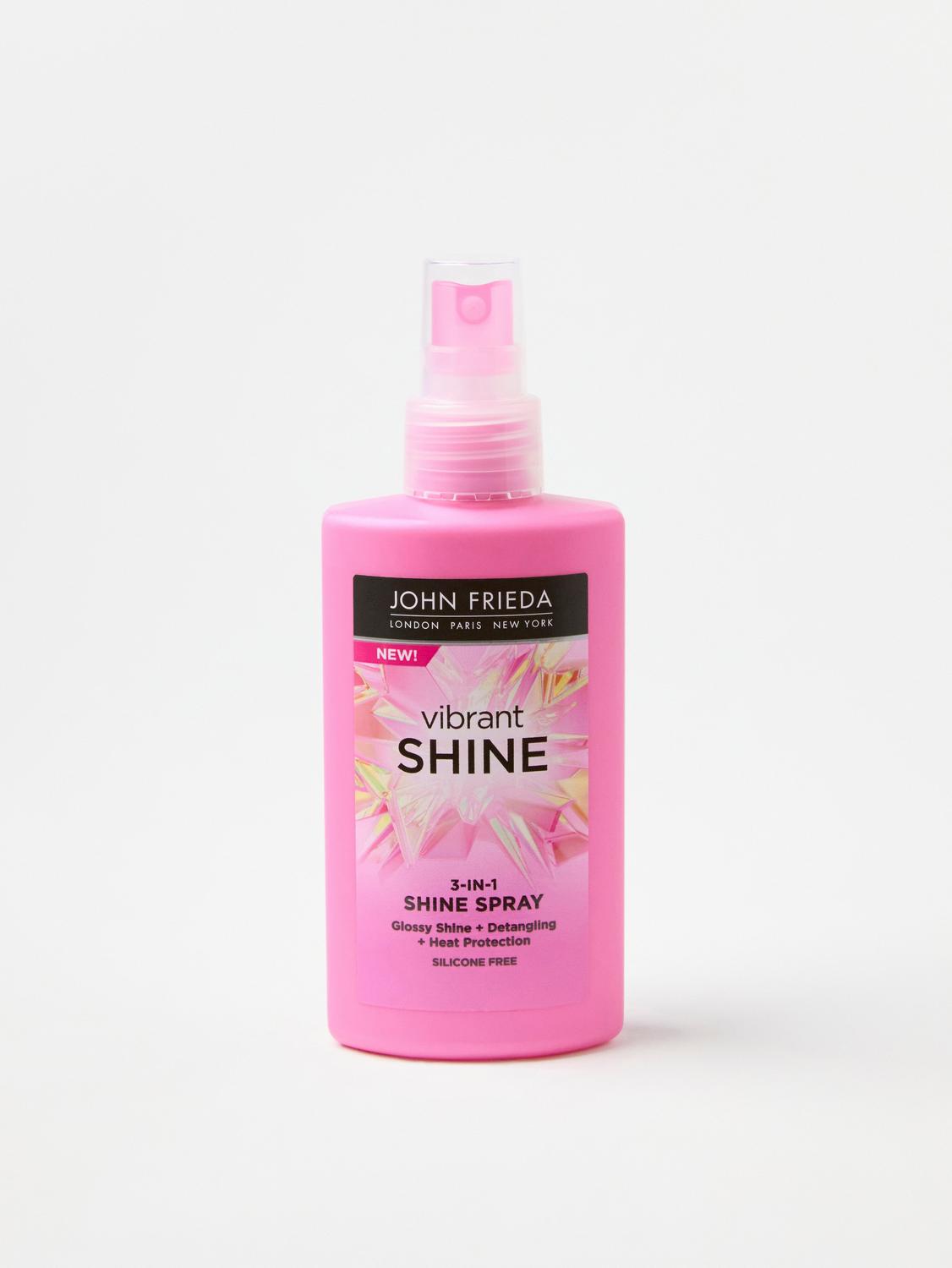 Vibrant Shine 3-in-1 Shine Spray från John Frieda ger glans, värmeskydd och med utredande effekt. Med denna 3-i-1 Shine Spray tar du omedelbart fram det bästa i din färg! Denna innovativa Vibrant Shine 3-i-1 Shine Spray, med arganolja, ger viktlös glans till alla nyanser, reder ut håret och ger värmeskydd upp till 200°C. Kan användas på både naturligt och färgbehandlat hår.