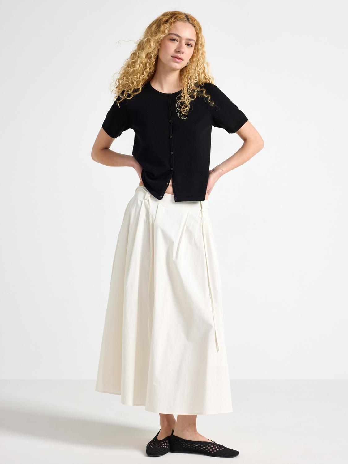 Midikjol i bomull med knytband i midjan.