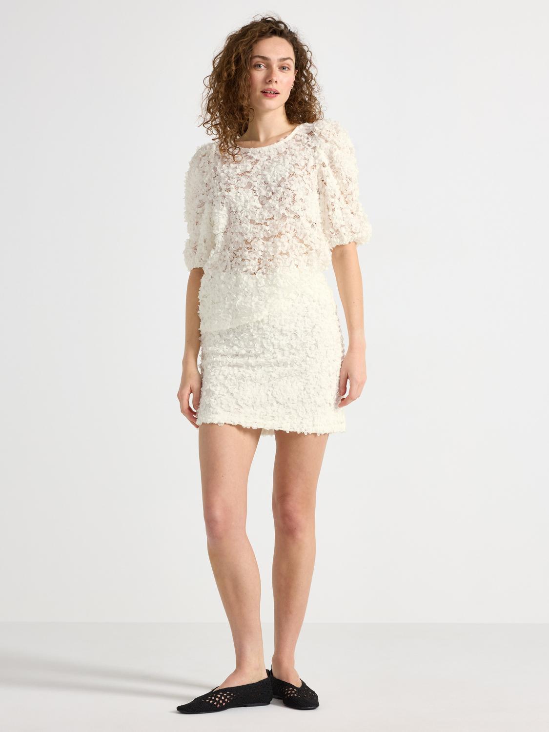 Denna maxikjol har ett vackert broderie anglaise-mönster och en bekväm resårmidja. Kjolen är perfekt för varma dagar och ger en feminin touch till din outfit.