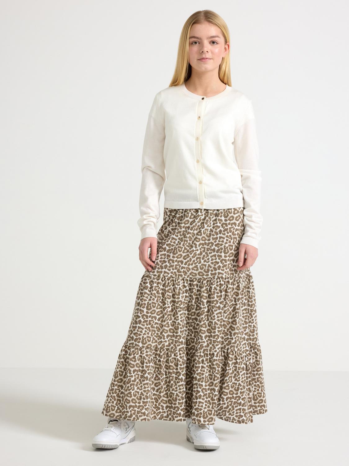 En lång kjol i mjukt viskosmaterial, perfekt för barn. Kjolen har en bekväm resårmidja och en fin volangkant nedtill.
