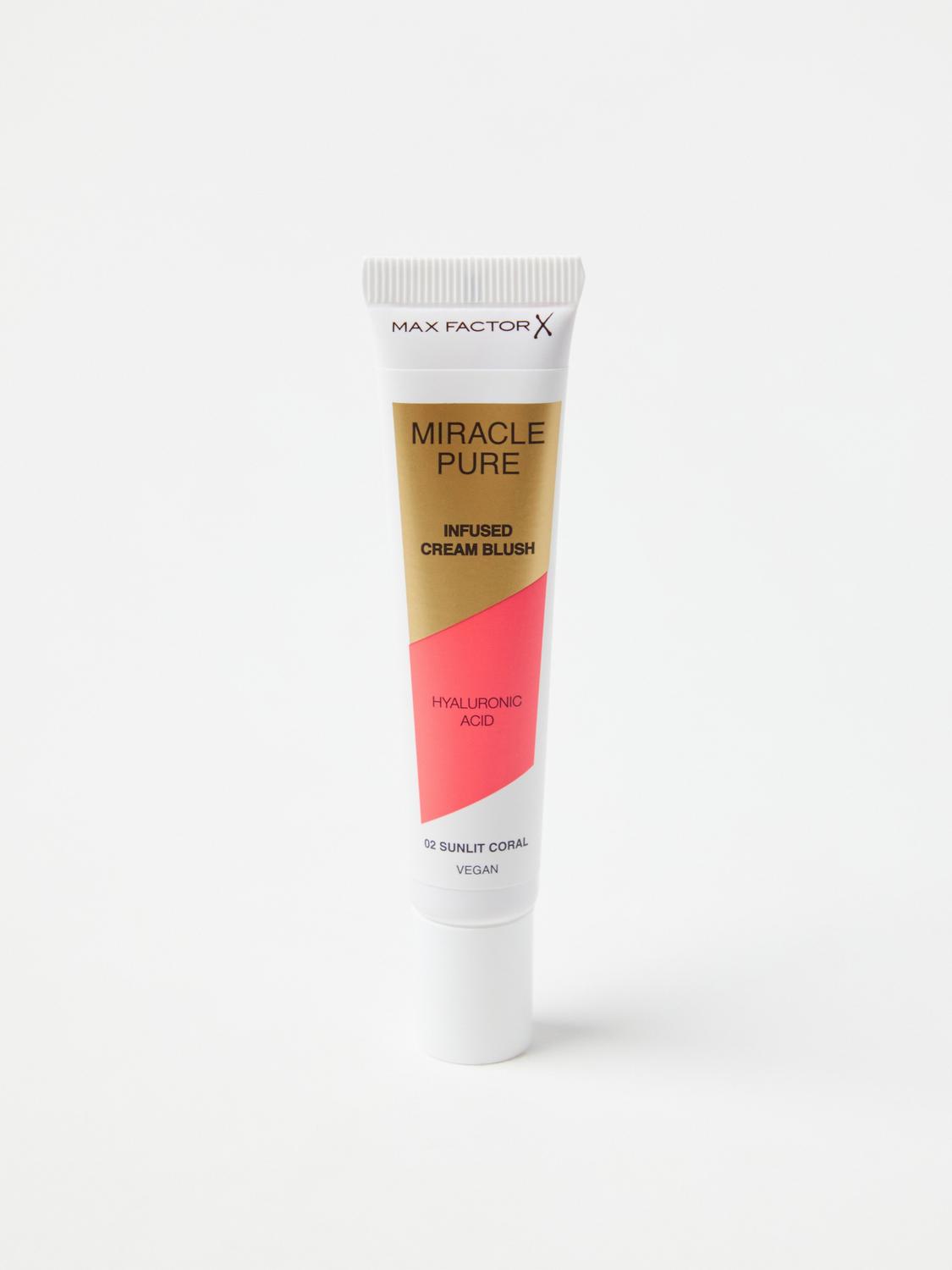 Max Factor Miracle Pure Cream Blush ger kinderna en fräsch och rosig färg samtidigt som den vårdar huden. Rouget innehåller ett fuktgivande komplex med hyaluronsyra och squalane som återfuktar och ger huden lyster. Den lätta, krämiga konsistensen smälter in i huden och ger en vacker, naturlig finish.