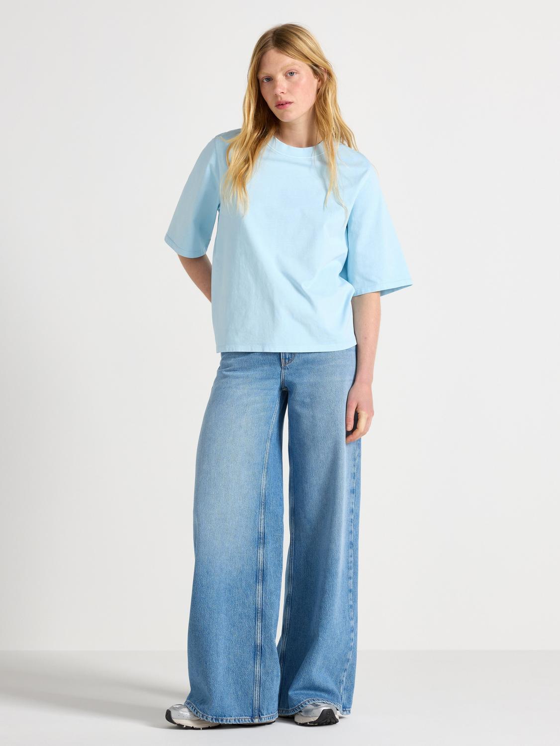 Dessa jeans har en avslappnad passform med extra vida ben och en bekväm, mjuk denimkvalitet. De har en medelhög midja och passar perfekt för en ledig look.