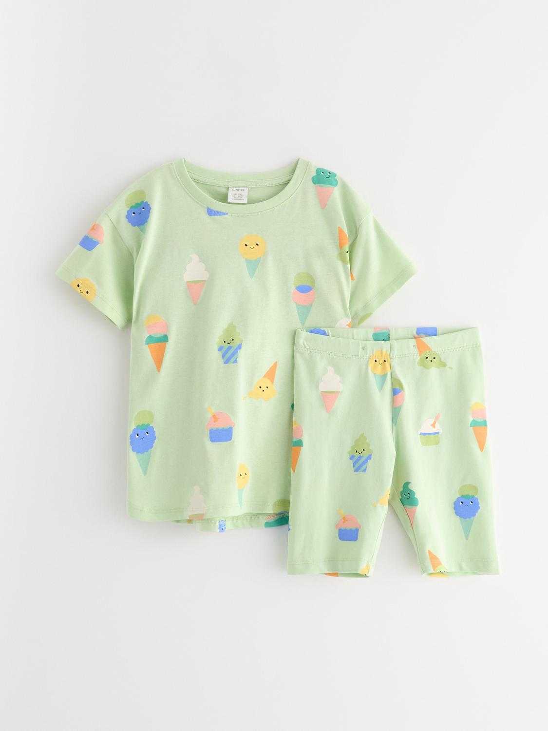 Detta mjuka set består av en topp och ett par ribbade cykelbyxor, perfekt för lek och mys hemma. Setet är bekvämt och följsamt, vilket gör det idealiskt för barn i rörelse.