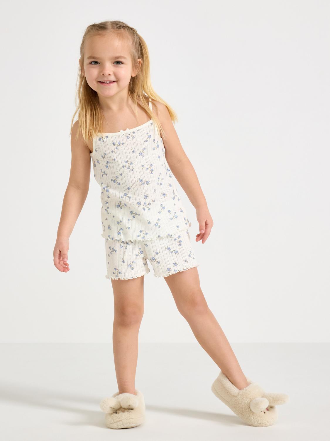 Ett sött pyjamasset i mjuk bomull med ett linne och ett par shorts. Perfekt för sköna nätter och mysiga morgnar. Setet är tillverkat i ett lätt och luftigt material som andas.