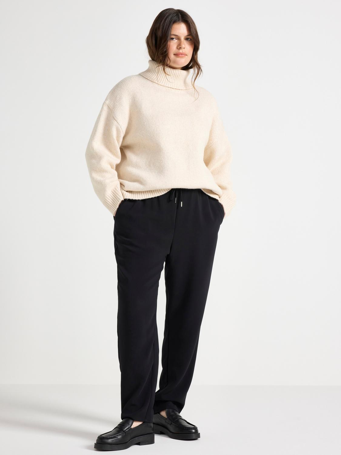 Dessa byxor har en rak passform och en bekväm resårmidja, vilket gör dem perfekta för både vardagsbruk och mer avslappnade tillfällen.