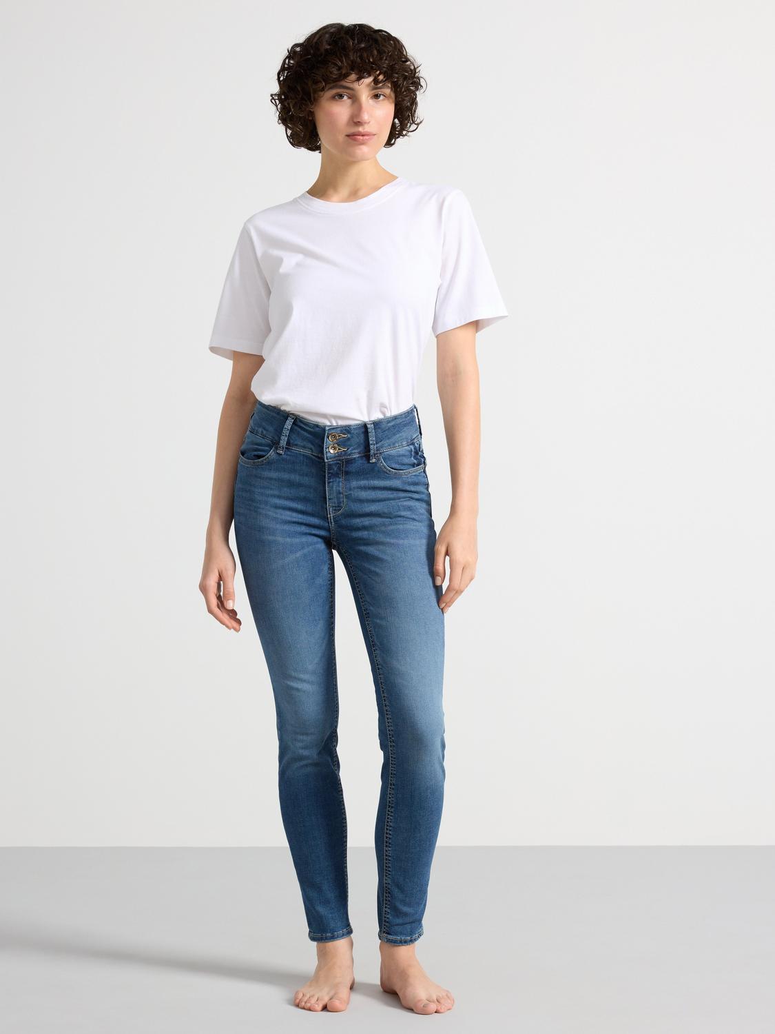 Dessa jeans har en medelhög midja och raka ben som är extra långa med en snygg uppvikning. De är tillverkade i stretchig bomullsdenim för en bekväm passform.