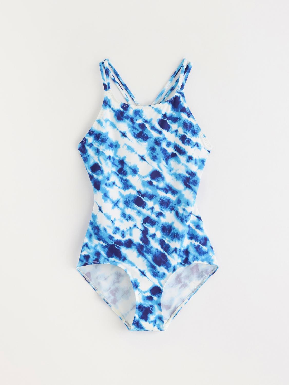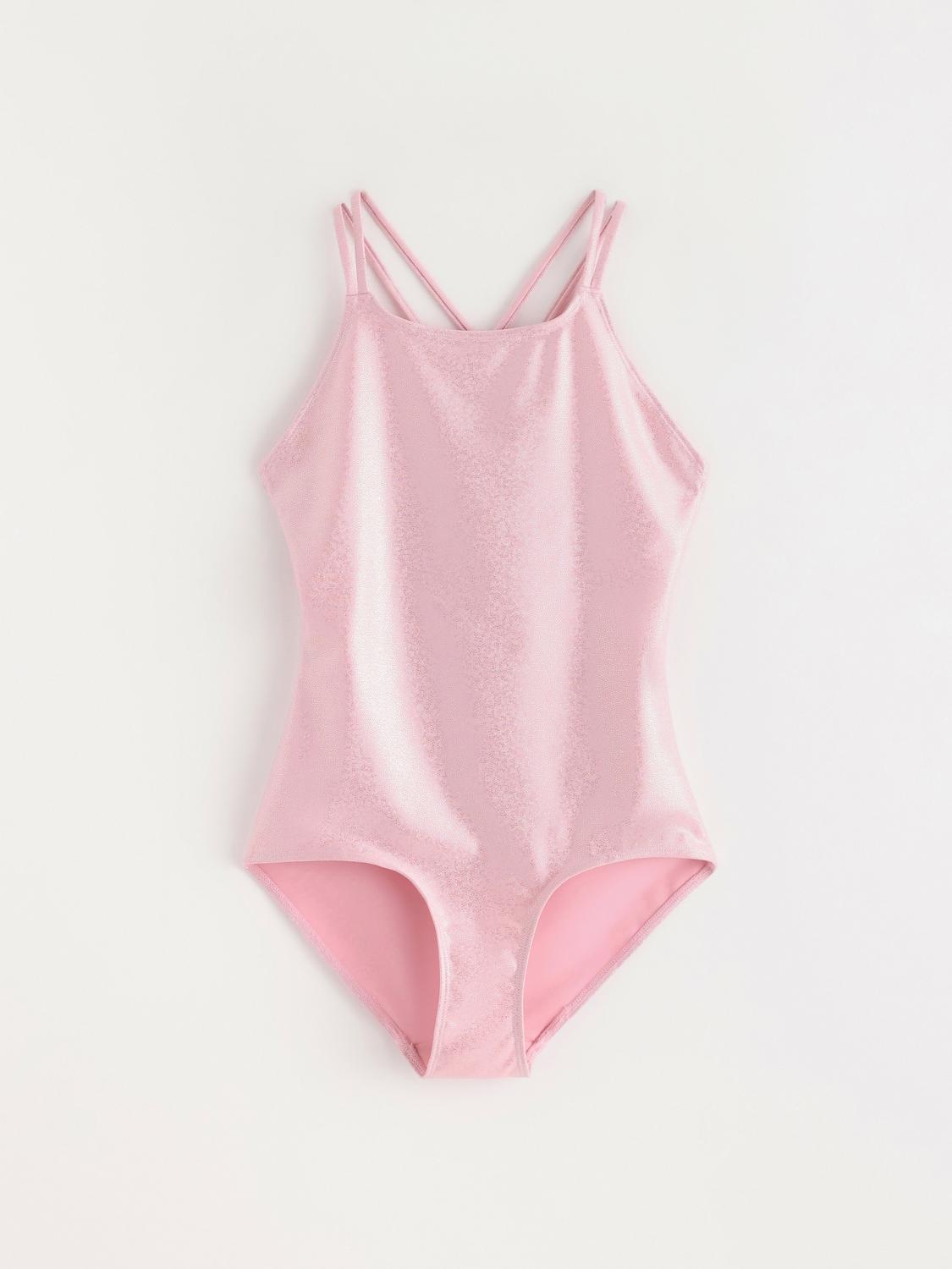 Ett sött bikiniset med ribbad textur, designat för barn. Bikinin har breda axelband och fina volanger som ger en lekfull touch.