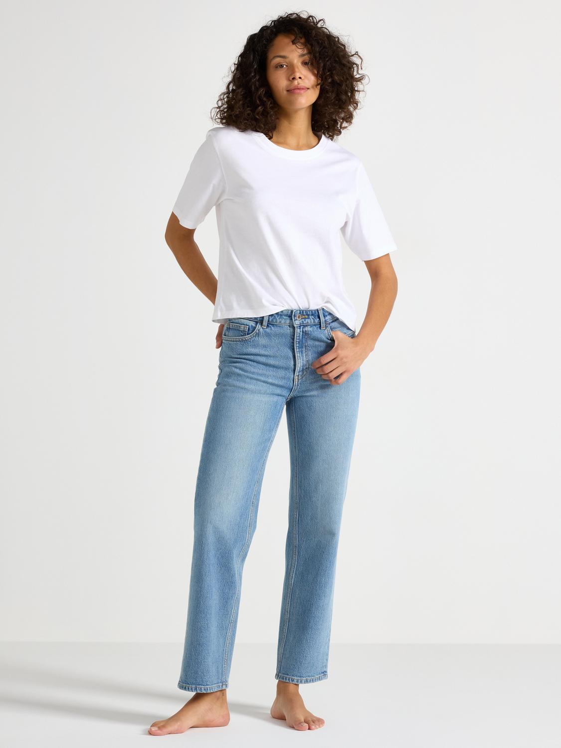 Jeans med medelhög midja i bomullsdenim med lätt stretch och raka, croppade ben.