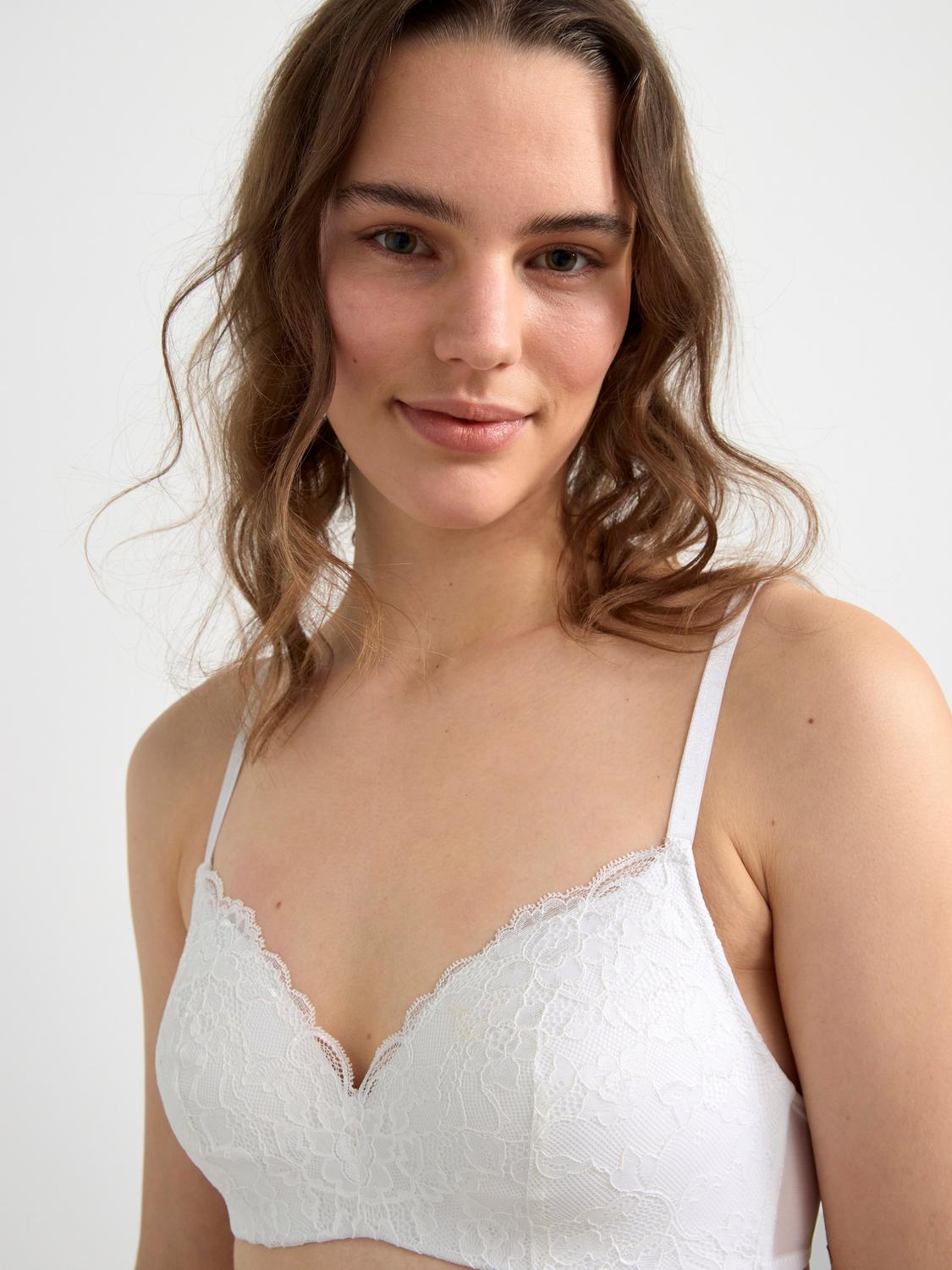 Denna amnings-bh i spets kombinerar komfort och funktion för ammande mödrar. Med nedfällbara kupor och justerbara axelband ger den stöd och bekvämlighet under amningsperioden.