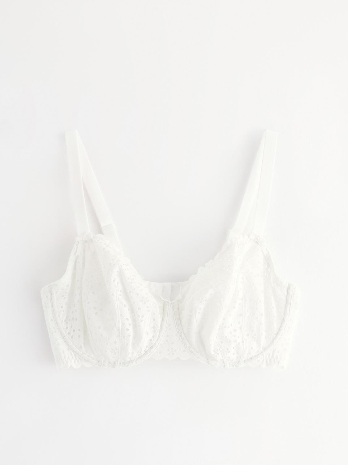 En bh med bygel som är utformad för större byst och ger extra stöd. Den har en mjuk vacker broderie anglaise och bekväma breda axelband.