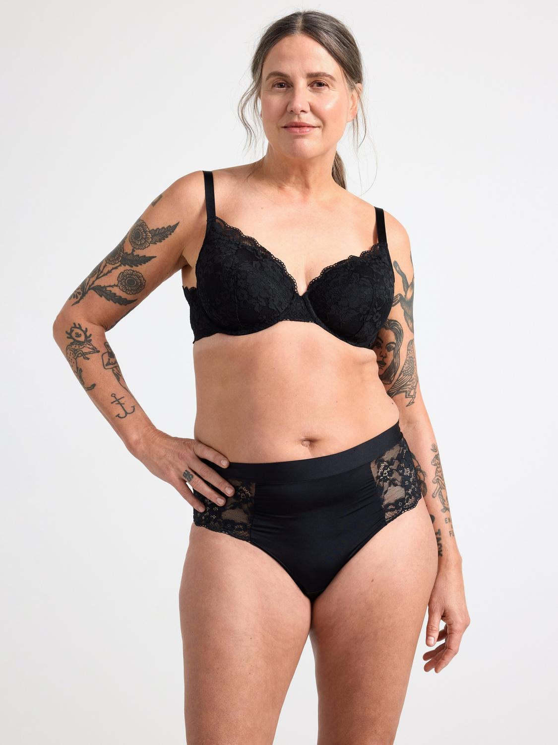 Dessa braziliantrosor är tillverkade i spets och har en normalhög midja för en bekväm passform. Trosorna kombinerar elegans med komfort och passar perfekt under alla typer av kläder.