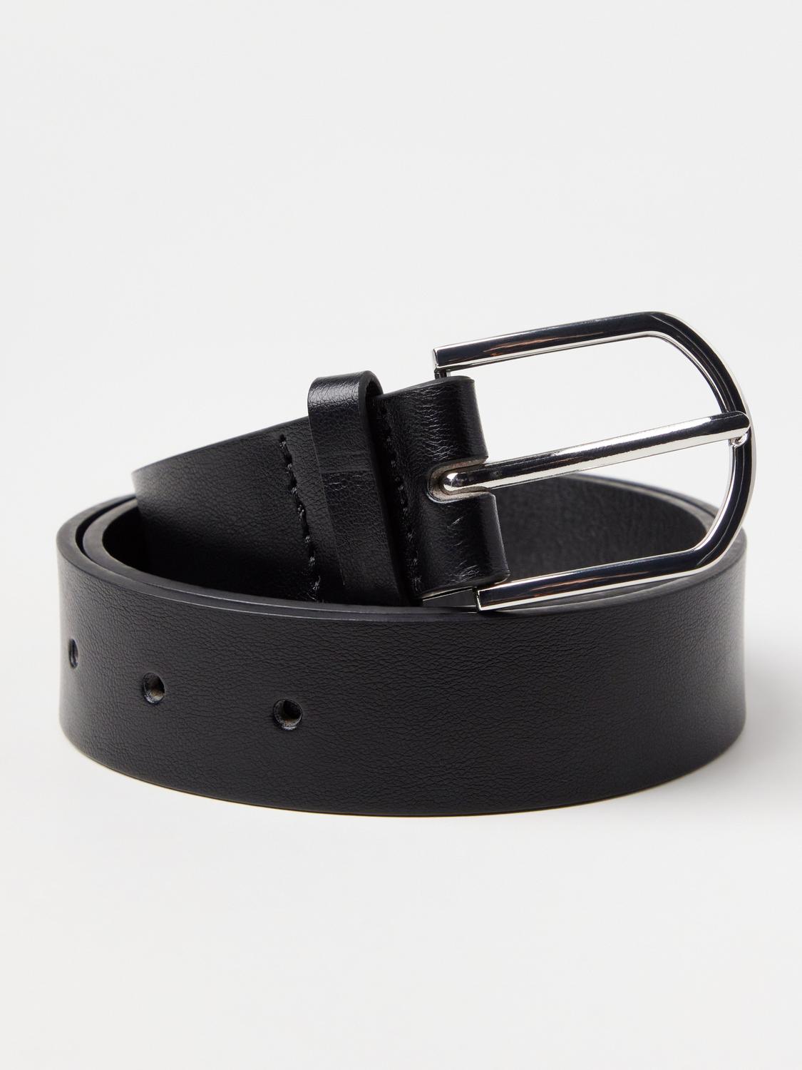 Ett brett och trendigt bälte i läderimitation med ett metallspänne. Bältet är ett snyggt tillbehör som passar till många olika outfits och stilar.