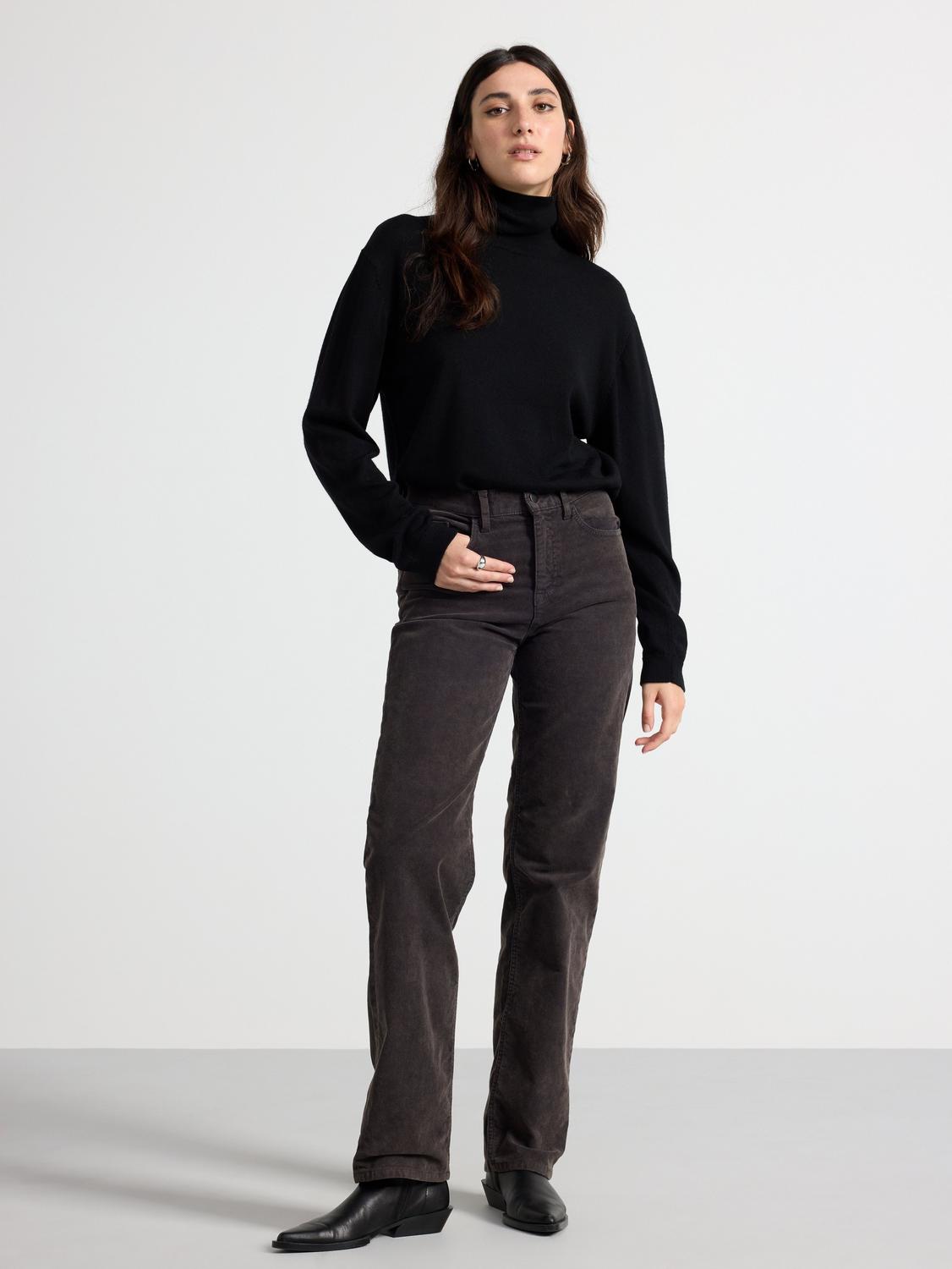 Dessa stretchiga manchesterbyxor har en hög midja och raka ben, vilket ger en bekväm och smickrande passform. Perfekt för en avslappnad men ändå stilfull look.