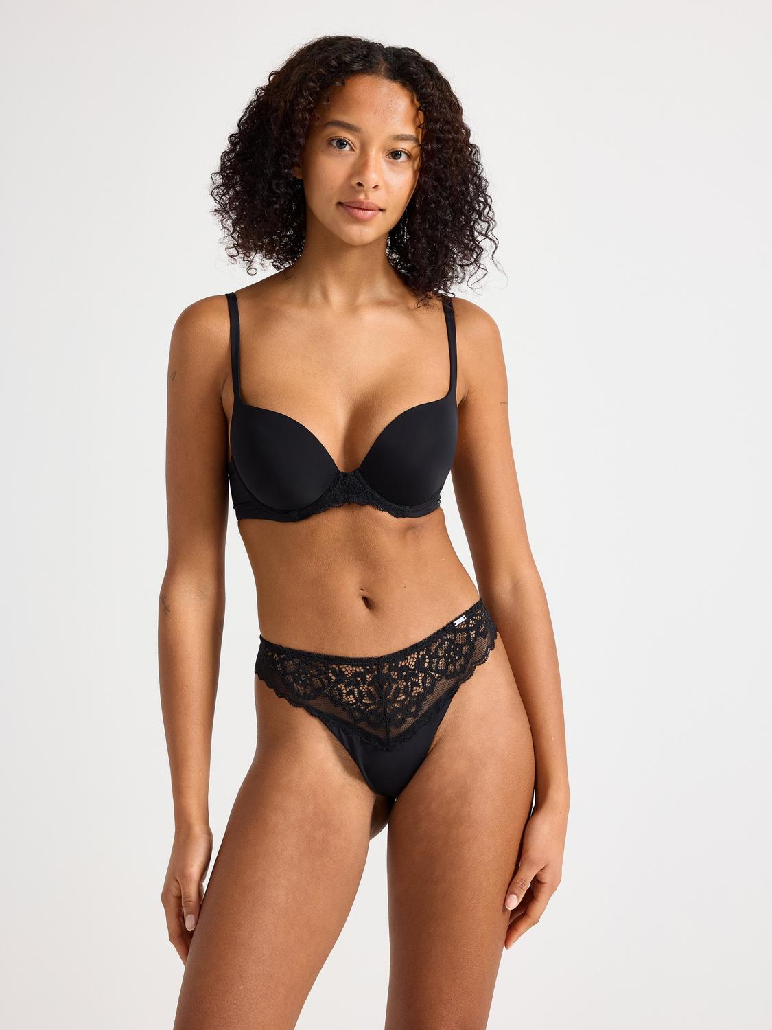 Brazilian-trosa med låg midja och blommiga spetsdetaljer fram- och baktill.