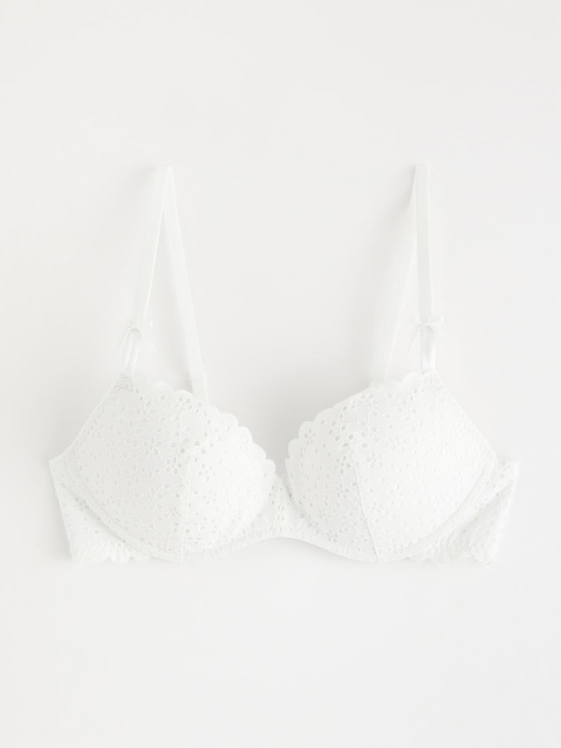 Denna bh kombinerar mjukhet och stöd med en extra skjuts uppåt. Kuporna är gjutna i ett lätt och flexibelt skummaterial som andas bättre än traditionell vaddering. De breda banden fördelar vikten jämnt och korsningen baktill ger extra stöd.