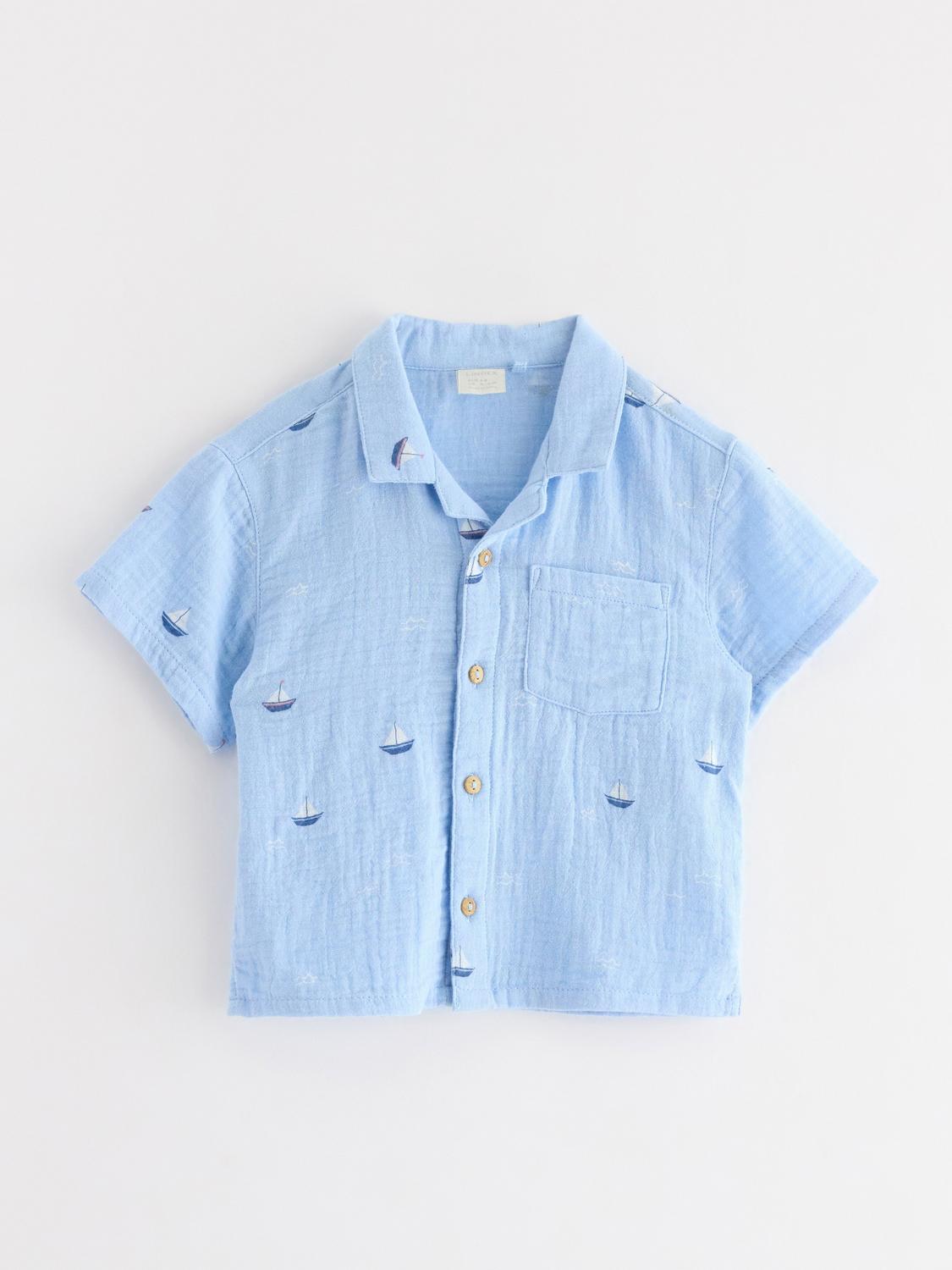Denna kortärmade topp är tillverkad i mjuk bomullsslub och har en söt sjömanskrage med en knappslå framtill. Den är bekväm att bära och passar perfekt för lek och bus.