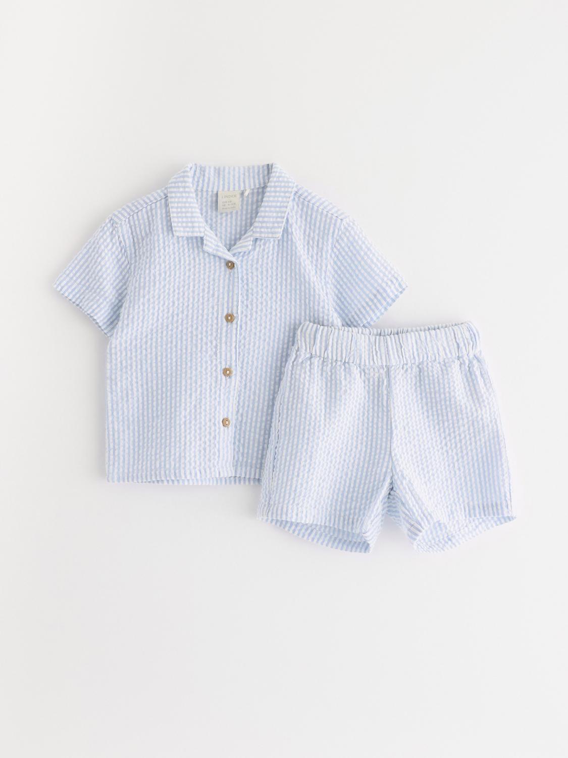 Ett bekvämt och matchande set för barn, bestående av en t-shirt och ett par shorts. Tillverkat i mjuk bomull för skön användning. Perfekt för lek och avkoppling hemma.