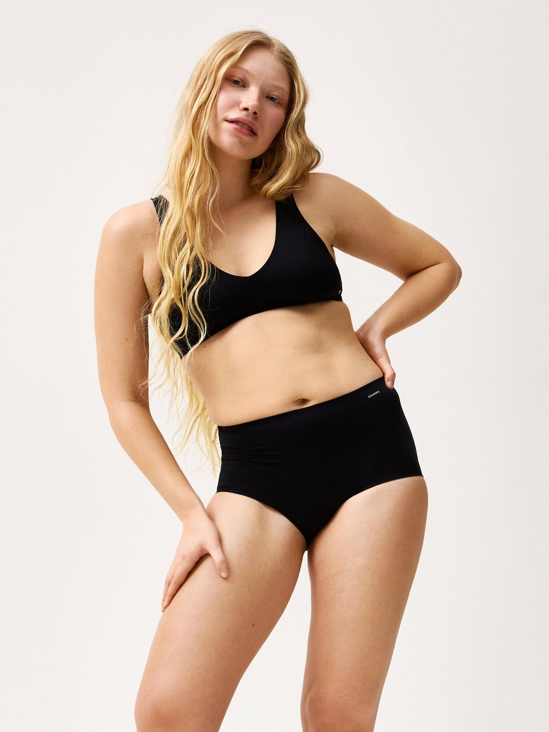 En supermjuk och bekväm bygel-bh med formade kupor utan vaddering. Den är tillverkad i ett återvunnet mikrotyg som är stretchigt och har en slät yta. Bh:n kan användas med korsad rygg eller som den är.