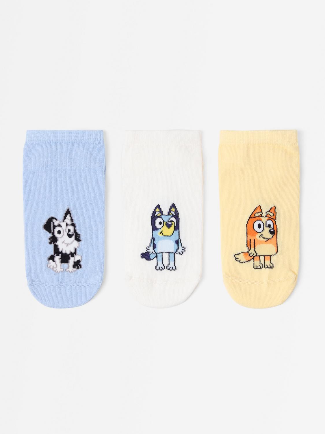 Ett 3-pack bekväma strumpor för barn, tillverkade i en mjuk bomullsblandning. Strumporna kommer i olika färger och har ett praktiskt halkskydd under foten.