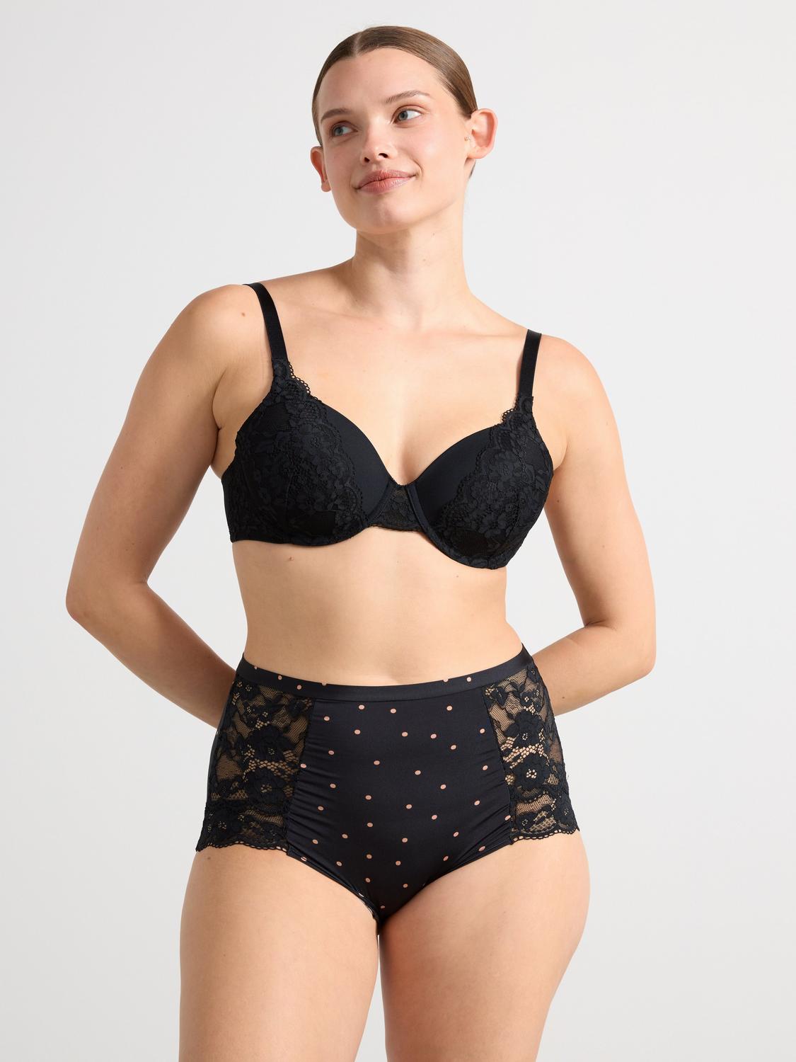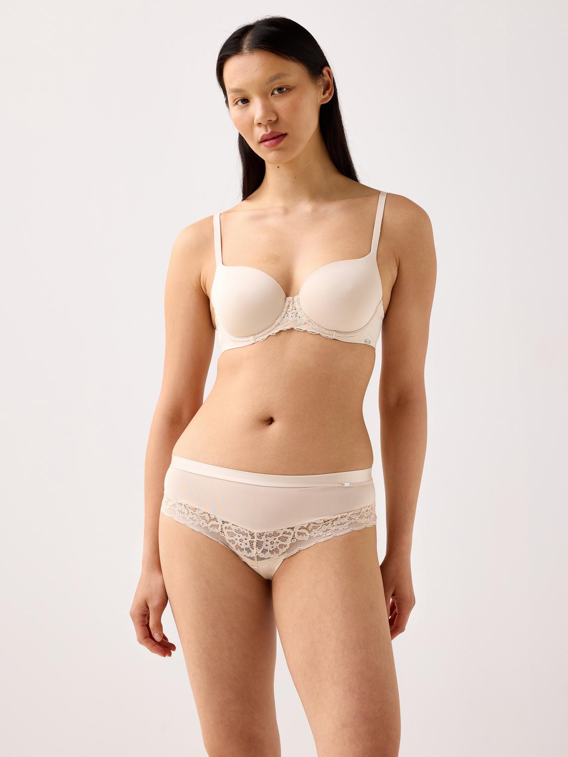 Dessa trosor har en normalhög midja och är tillverkade i ett mjukt material. Spetsdetaljerna på sidorna och den lilla rosetten framtill ger en feminin touch.