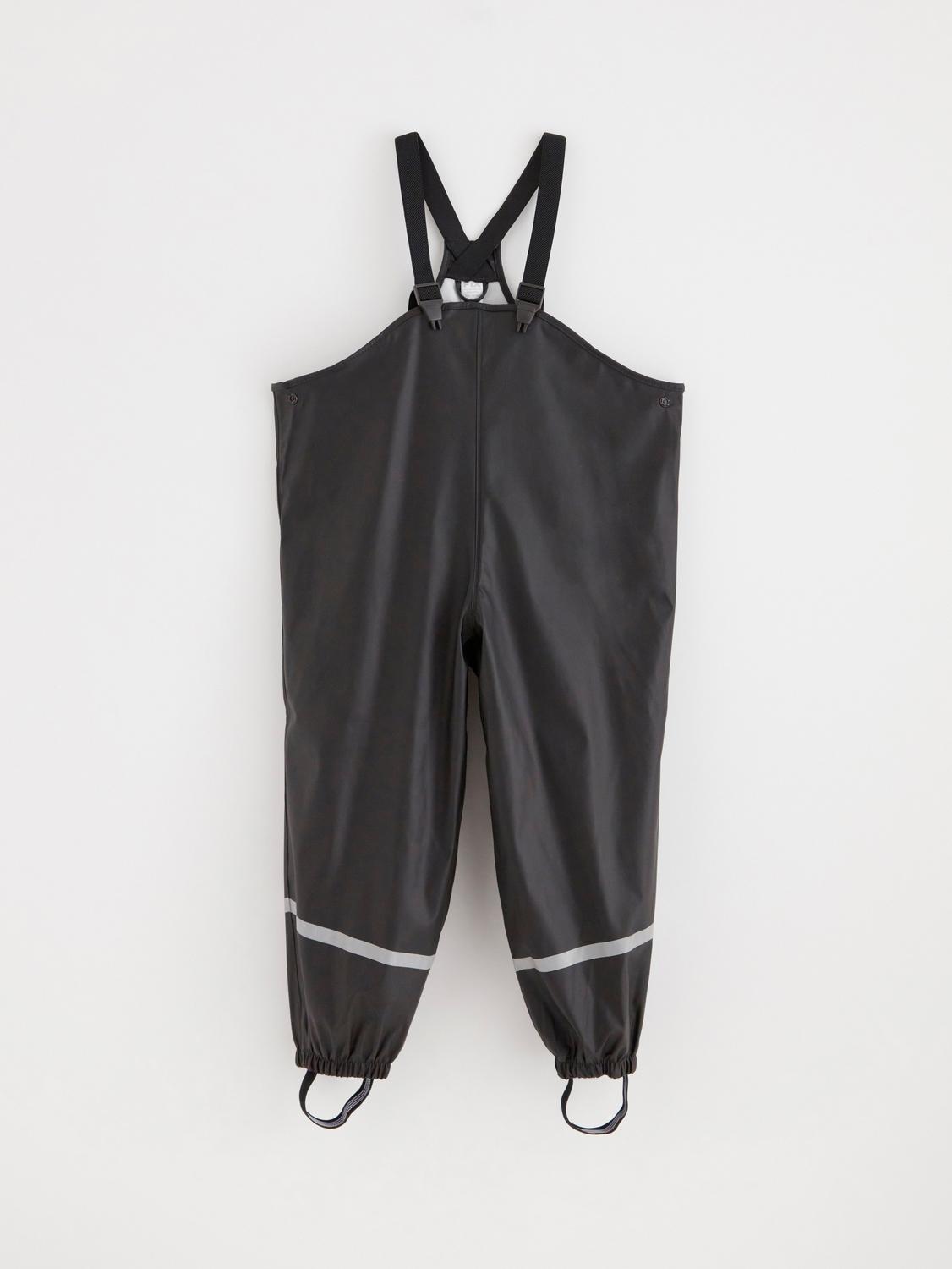 Dessa regnbyxor är både vind- och vattentäta, perfekta för lek utomhus i alla väder. De är tillverkade i galon med svetsade sömmar och har justerbara hängslen för bästa passform. Byxorna är lätta att torka av och har praktiska fotremmar.