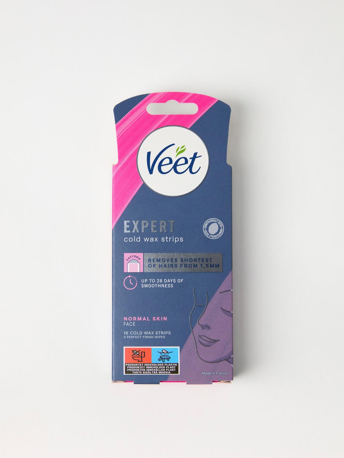 Veet Expert Wax Strips Face är vaxremsor för ansiktet som är anpassade för normal hud. De är utformade med EasyGrip-teknologi för att effektivt ta bort korta hårstrån från roten. Huden blir len och återfuktad tack vare innehållet av sheasmör.