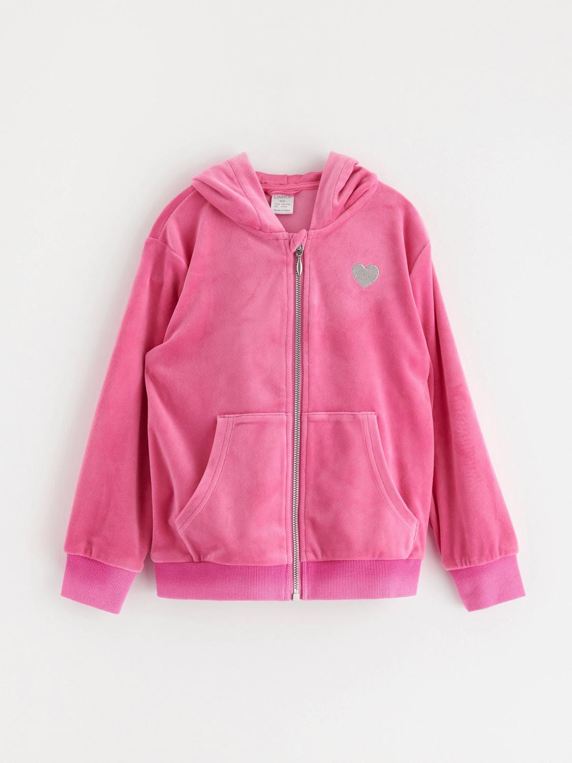 Mjuk och skön velourhoodie med dragkedja fram och fodrad huva. Perfekt för mysiga dagar hemma eller som ett bekvämt lager under kyligare utflykter.
