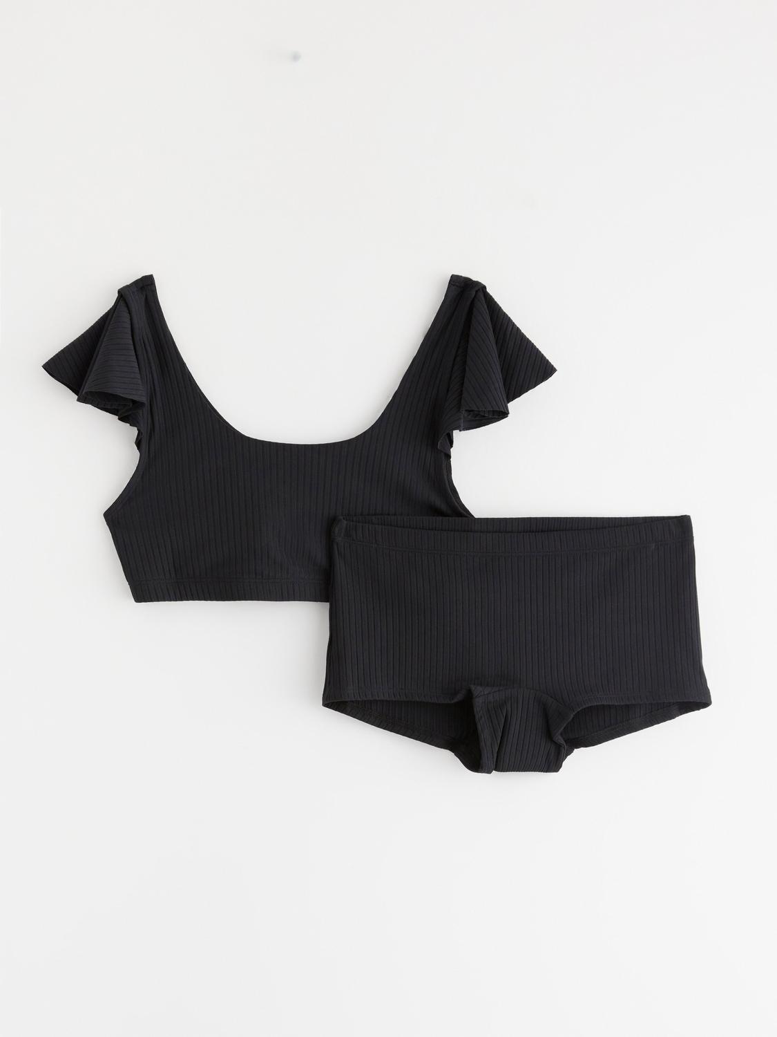 Ovadderad bikiniöverdel i ribbat tyg med bygel och smala axelband.