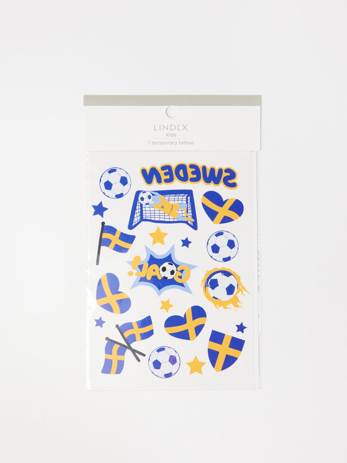 Temporära Tatueringar Racing 15-pack består av femton tillfälliga tatueringar med racing motiv, inklusive fyra skimrande guldfärgade stjärnor och en pokal, två orangea blixtar, två texter "START" i orange och "FINISH!" i rött, ett hjul med utstickande flammor, en tävlingsflagga, en rosett samt tre bilar i rött, orange och mintblått med vita och orangea detaljer.