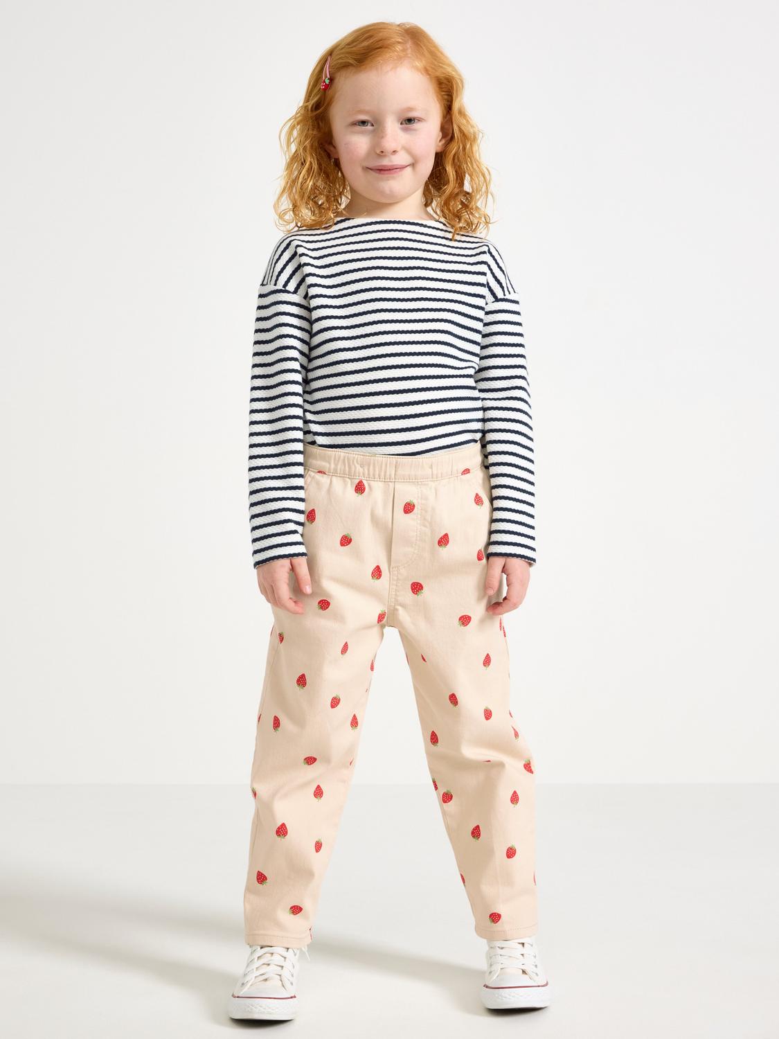 Dessa pull-on byxor är tillverkade i ett mjukt bomullstyg och har en ledig passform med raka ben. Byxorna har resår i midjan för extra komfort och är designade med en hög midja och full längd.