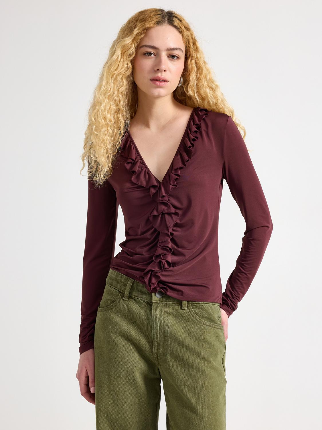 Denna figursydda långärmade off-shoulder topp är tillverkad i mjuk manchesterbomull med stretch. Toppen har en smickrande halsringning, knäppning och lätt utsvängda ärmar för en modern och sofistikerad look.