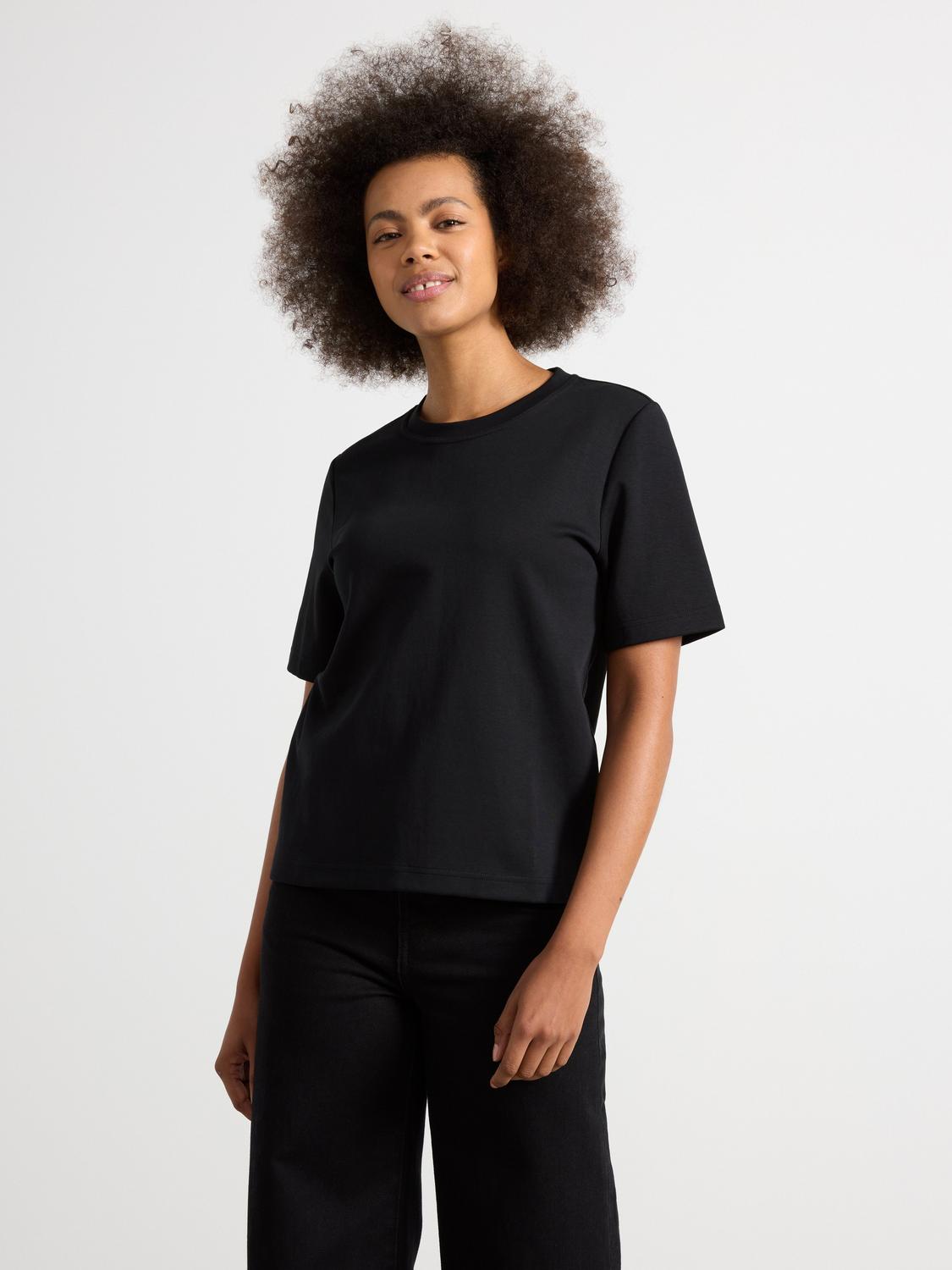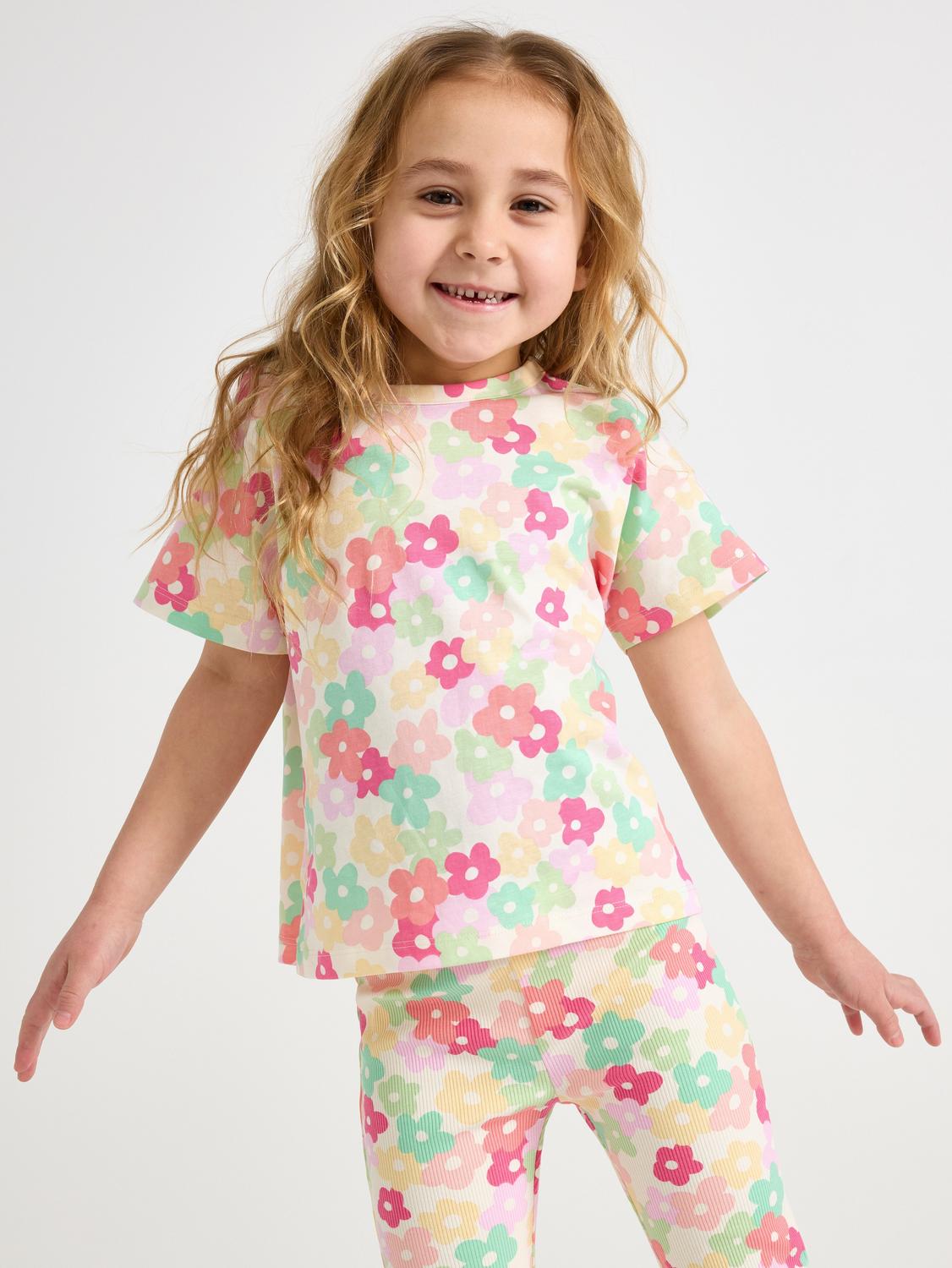 Denna croppade T-shirt är tillverkad i mjuk bomull och har ett tryck. Den har en smal passform och en kortare längd, vilket ger den en modern look. T-shirten har en rund halsringning och korta ärmar.