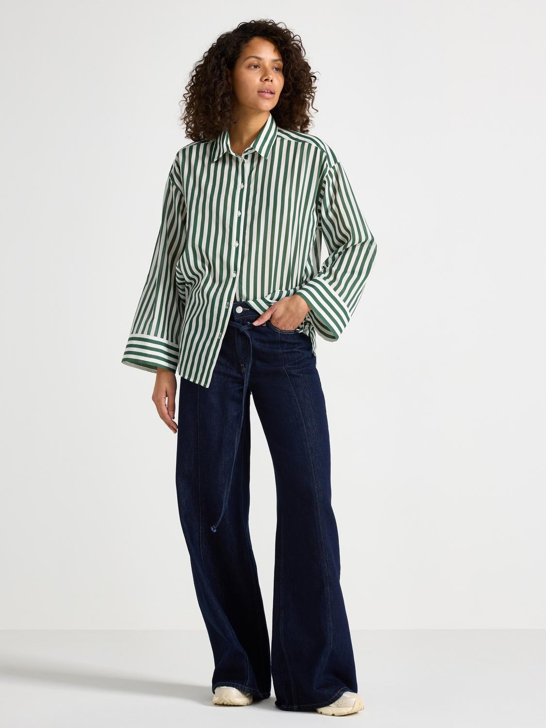 Jeansen är tillverkade av denim i bomull, främst från ekologisk bomull, och en liten mängd elastan för bästa passform. Den ekologiska bomullen gör dem inte bara miljövänliga, utan ger också en mjuk och bekväm känsla mot huden. Den lätta stretchen från elastan ger extra rörelsefrihet och gör att jeansen sitter perfekt på din kropp.