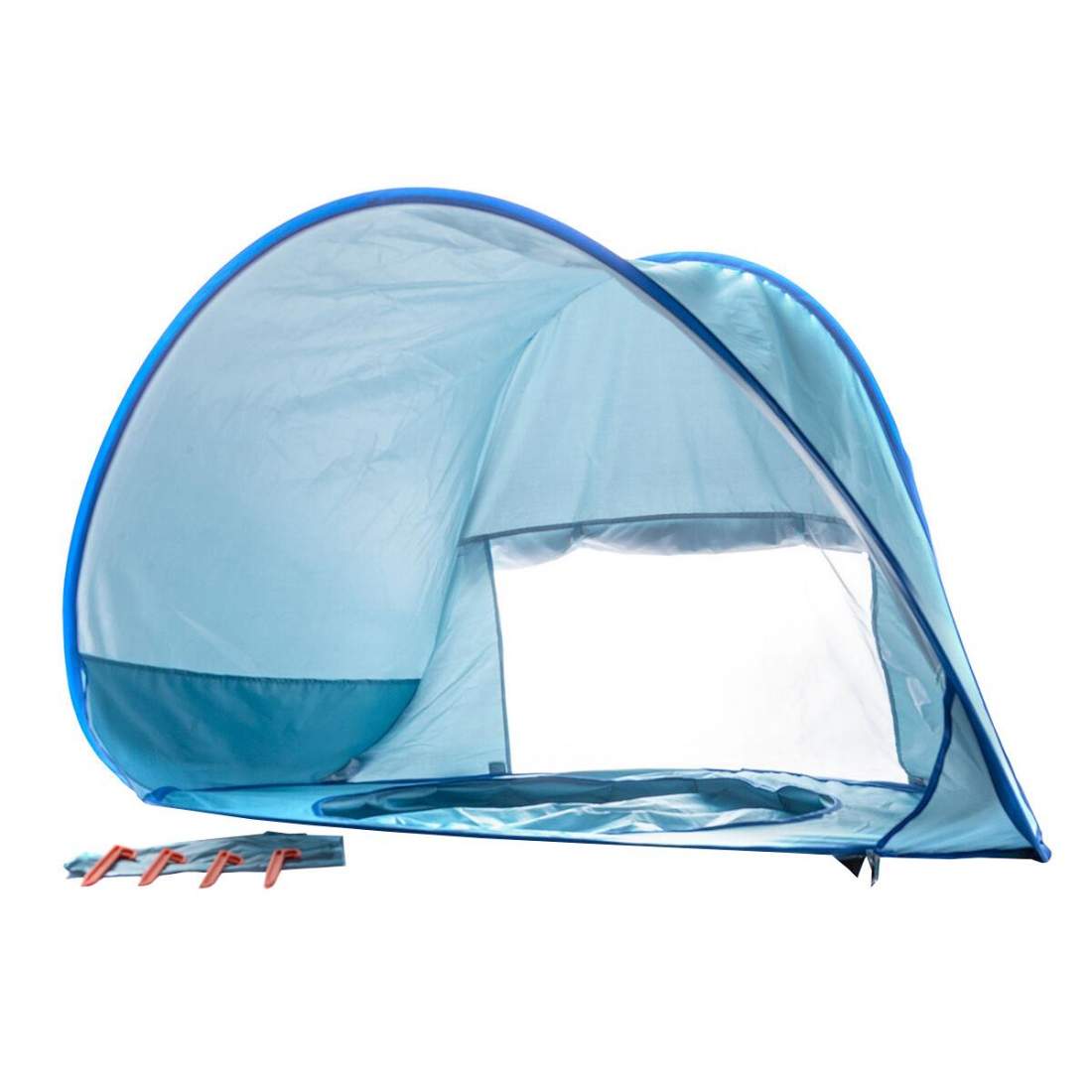 Det här tältet är perfekt för strandturen! Det är lätt att sätta upp och smidigt att ta med sig. Inuti tältet finns en pool med ett djup på 18 cm. Där kan barnen bada tryggt och säkert, och samtidigt vara skyddade från solen. Poolen kan även tas bort och användas separat om så önskas. Strandtältet har dessutom ett fönster med myggnät, och två praktiska fickor för leksaker. - Strandtält med pool - Lätt att sätta upp - Skyddar mot solen Specifikationer: Färg: Blå Mått tält: 110 x 72 x 81 cm Mått pool: 69 x 18 x 55 cm Solskydd: SPF 50+ Vikt: 0,975 kg Rek. ålder: 1-5 år