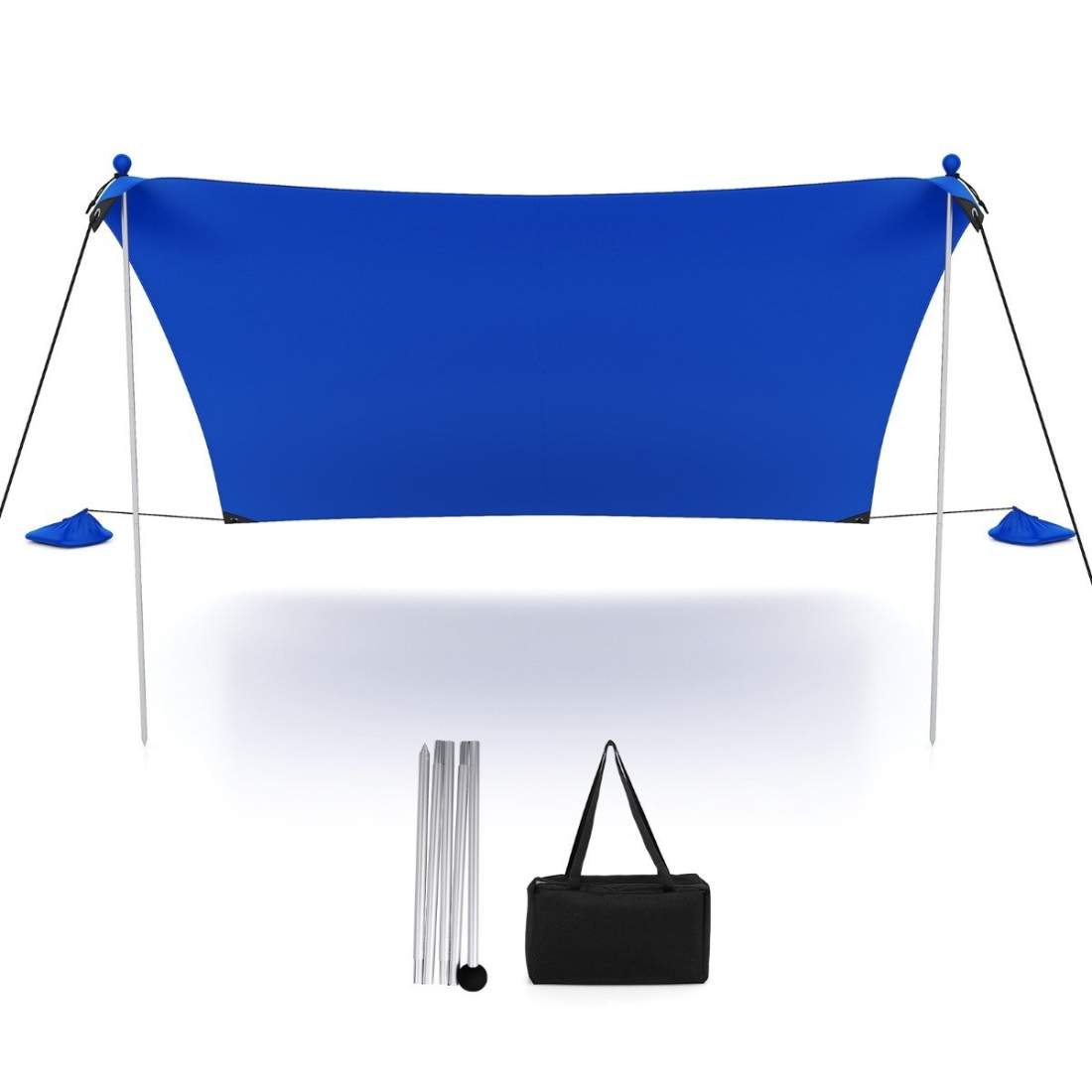 Strandtält 230 x 200 cm UPF 50+ soltält med sandankare, sandsäckar och 2 stödstolpar blå
