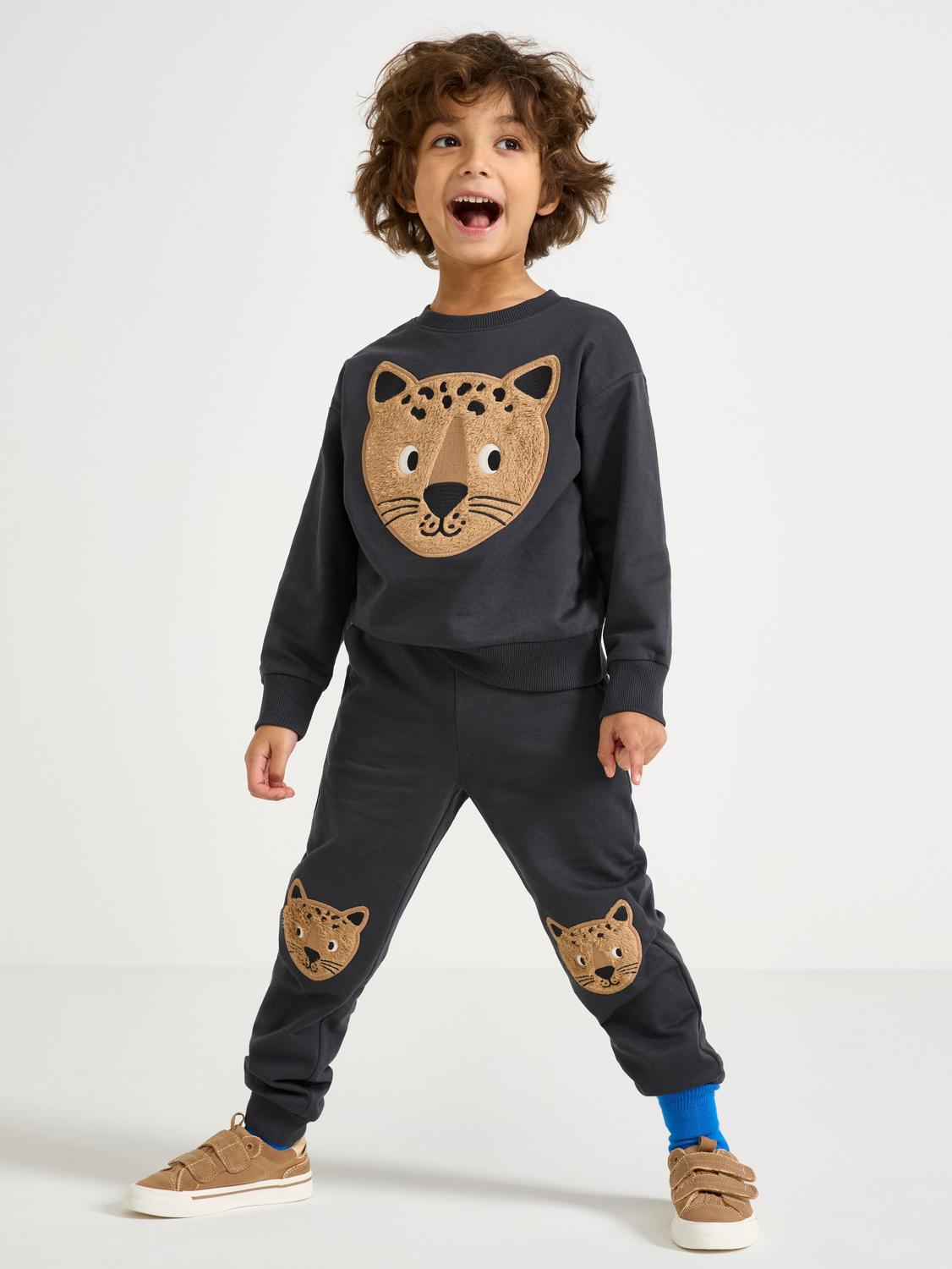 Bekväma jerseybyxor i bomull med påsydda lappar vid knäna och borstad insida.