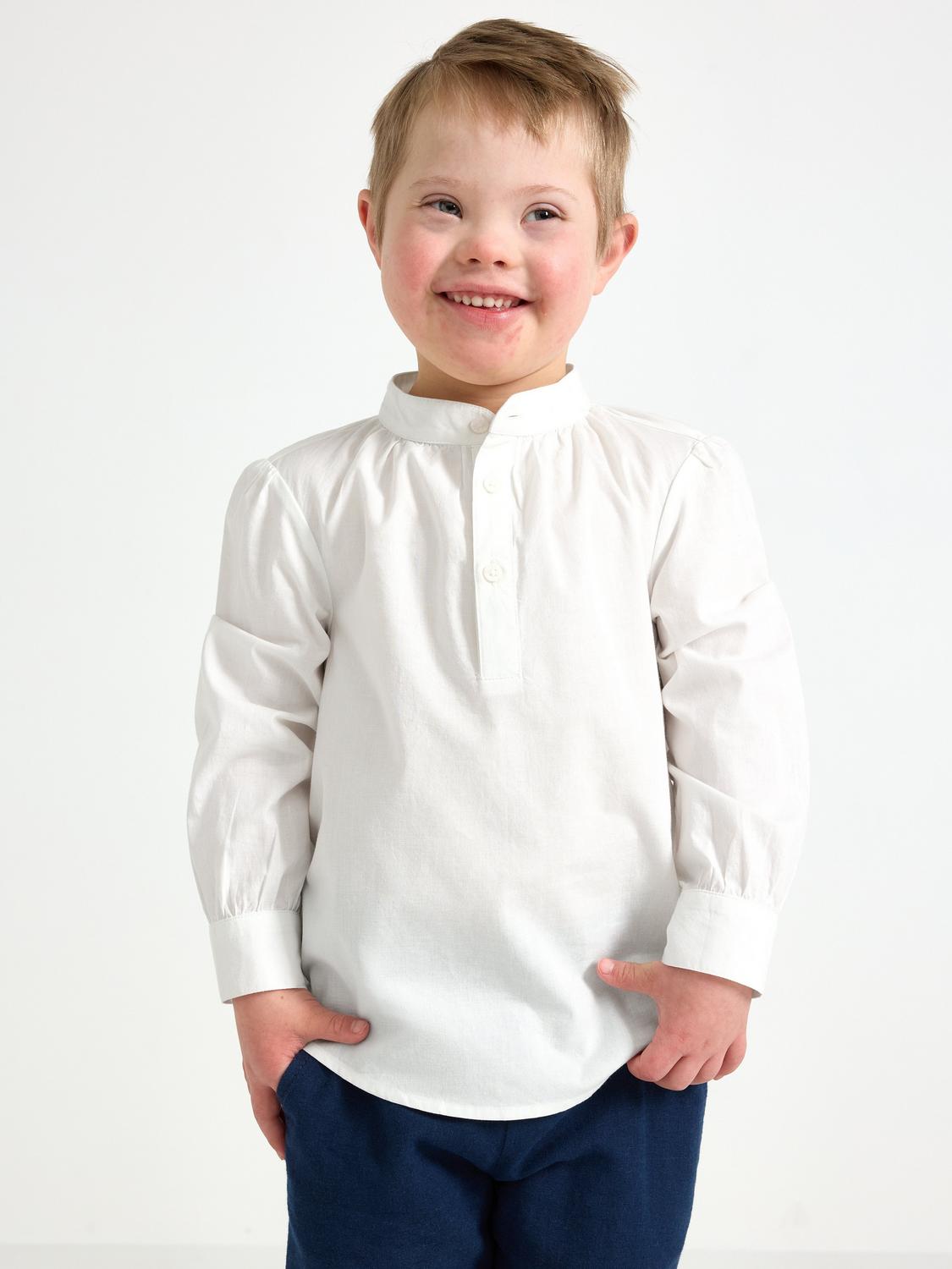 En klassisk oxfordskjorta för barn, tillverkad i vävd ekologisk bomull. Skjortan passar både till vardag och fest och finns i flera färger som matchar andra plagg i kollektionen.