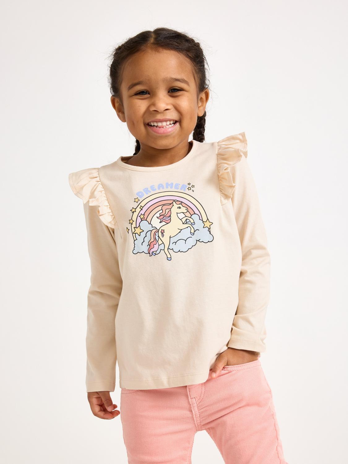 En mjuk och bekväm långärmad t-shirt tillverkad av 100% ekologisk bomull. Tröjan har en elastisk mudd vid halsringningen och ärmsluten för en bra passform. Storlekarna 74-92 har praktiska tryckknappar på axeln för att underlätta vid på- och avklädning.