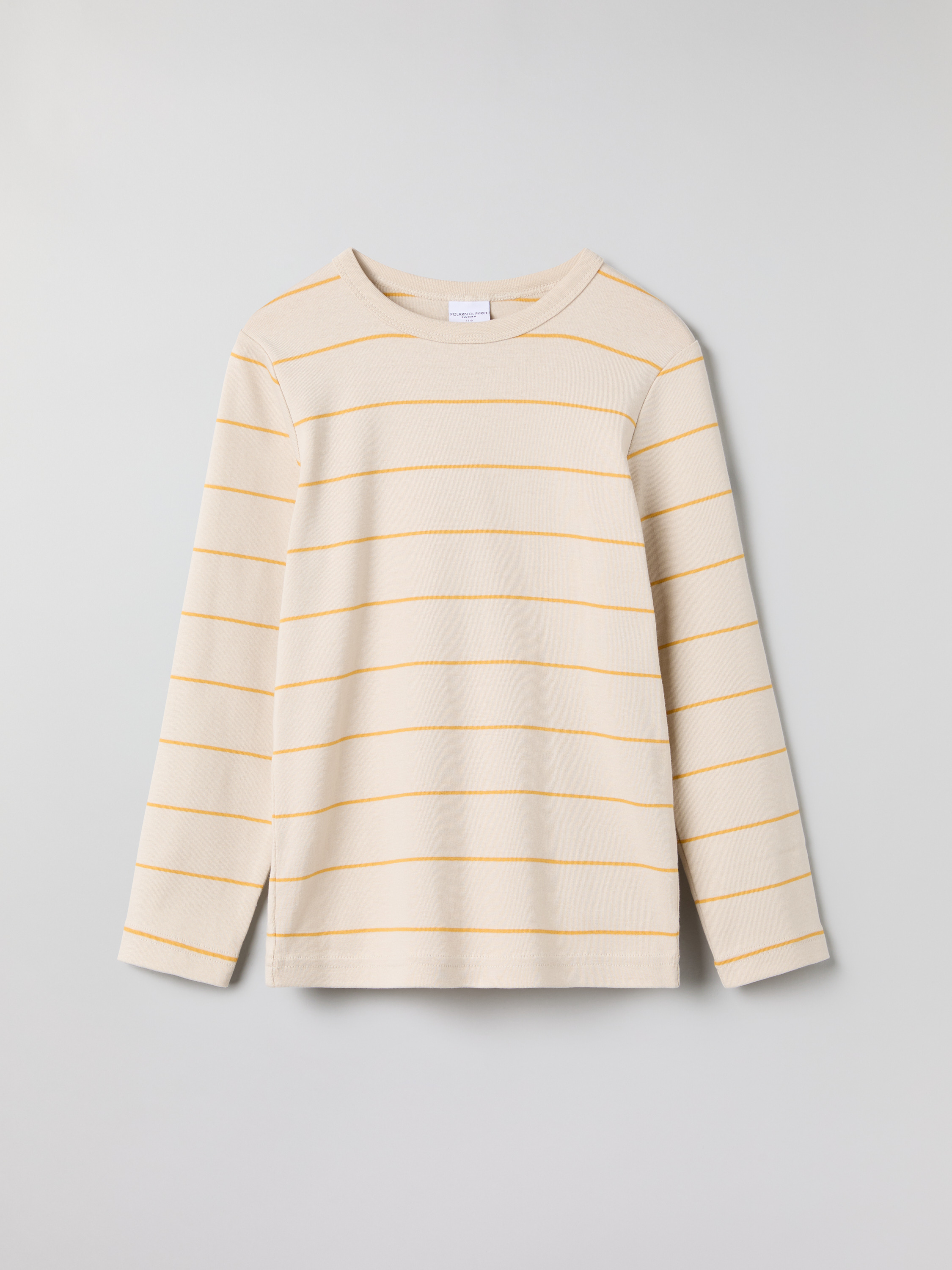 En bekväm och praktisk långärmad tröja för barn, tillverkad i mjuk ekologisk bomull. Den ribbade designen och de praktiska tryckknapparna på axeln gör den enkel att ta på och av.