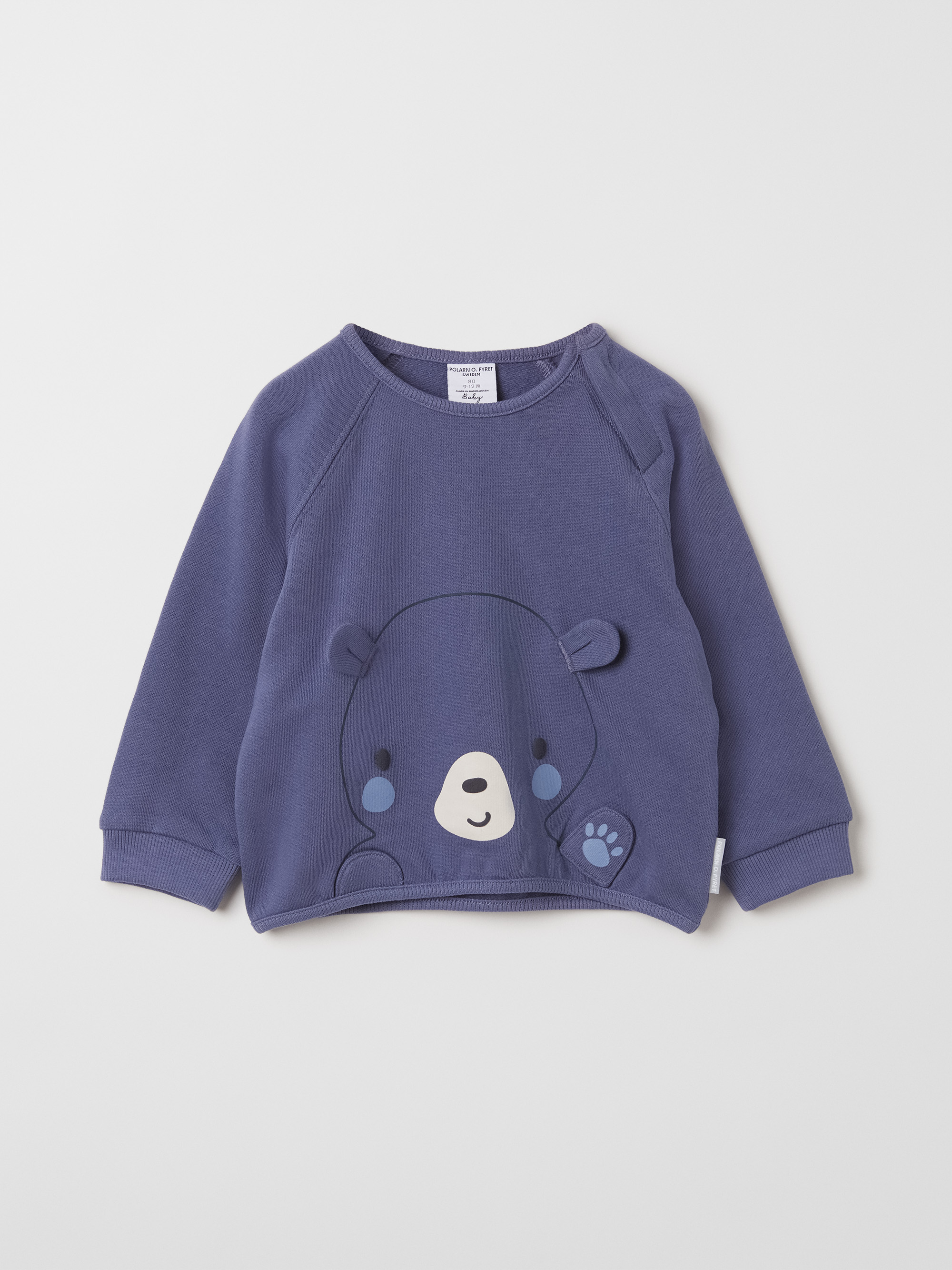 En mjuk och bekväm sweatshirt för baby med ett sött björntryck. Tillverkad av ekologisk bomull och har praktiska tryckknappar vid axeln för enkel på- och avklädning. Perfekt för lek och mys.
