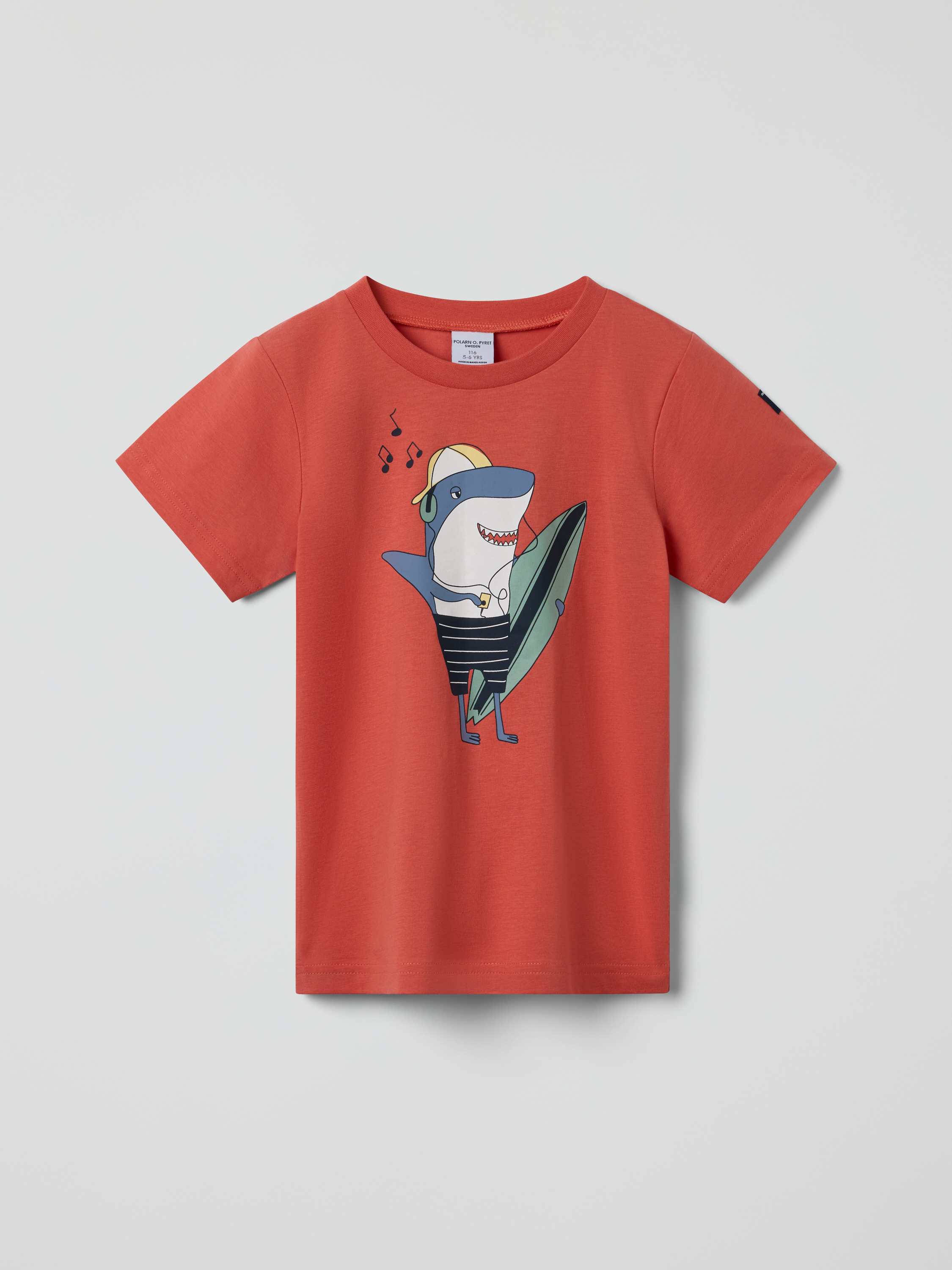 En bekväm t-shirt för barn, tillverkad i ekologisk bomull. Den har ett lekfullt tryck på bröstet och är perfekt för vardagsbruk. Finns i flera färger och storlekar.